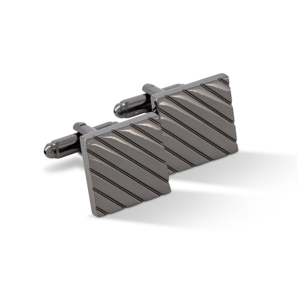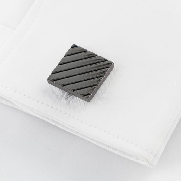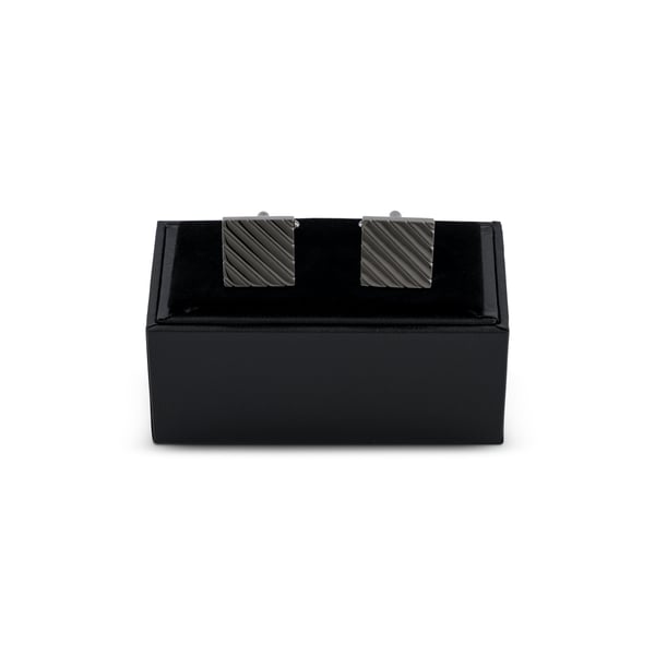 Gun Metal Grey Square Cufflinks with Diagonal Grooves