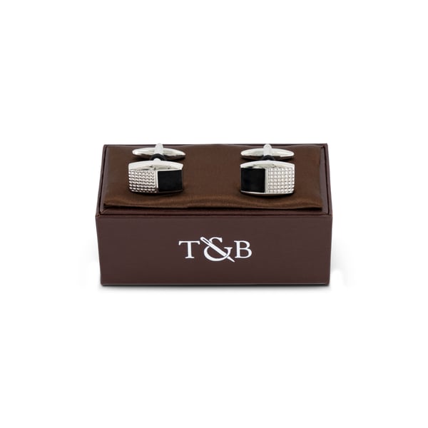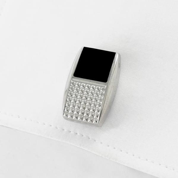 Chequered Black and Polished Silver Rectangular Cufflinks