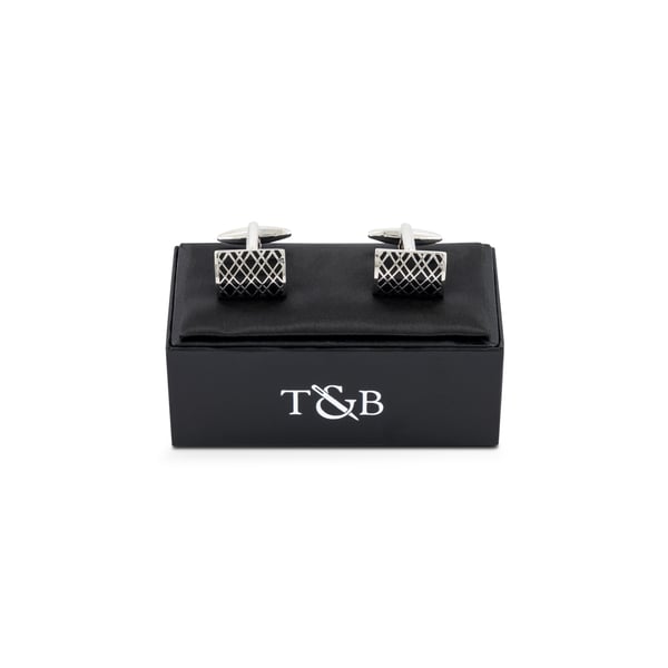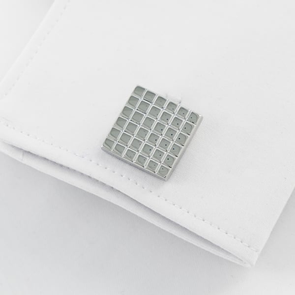 Matt Silver Finish Square Grid Pattern Cufflinks