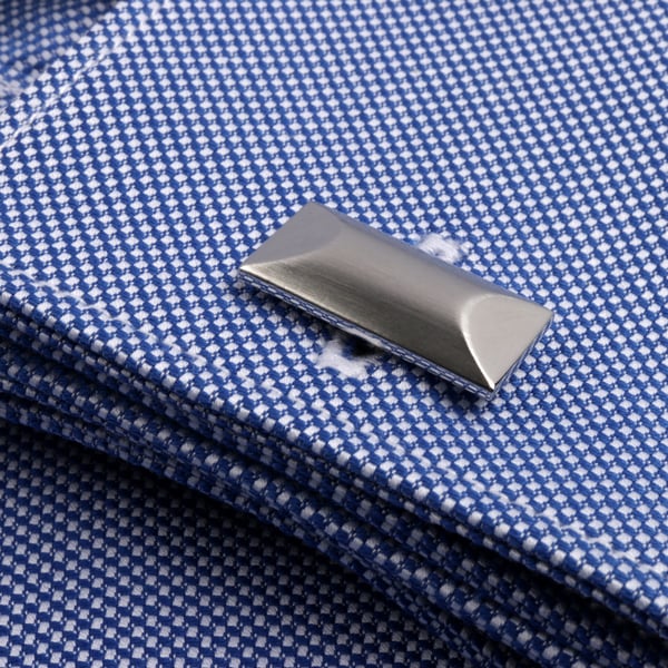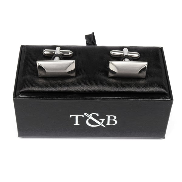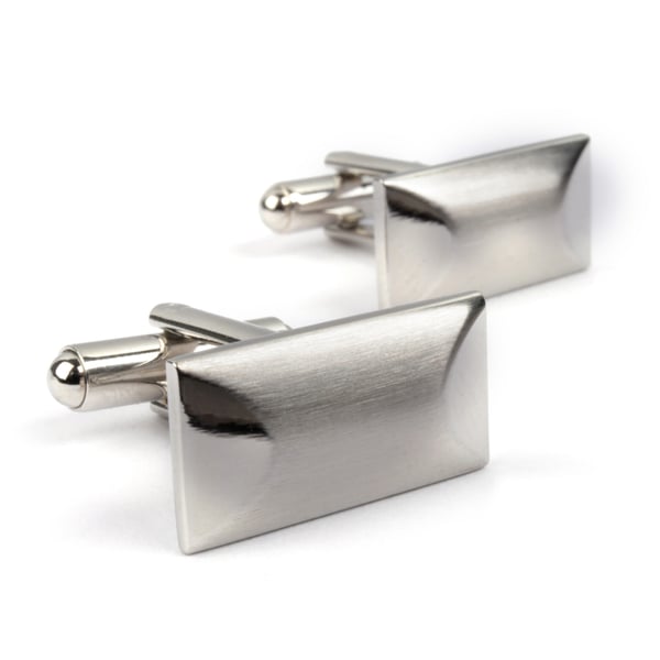 Brushed Silver Rectangular Cufflinks with Curved Ends