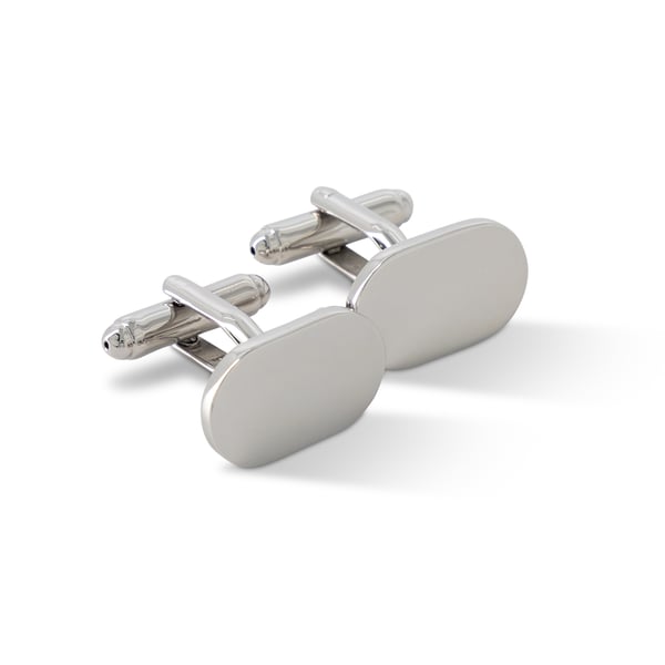 Oval Cufflinks w Brushed Silver Frame & Gloss Top Finish