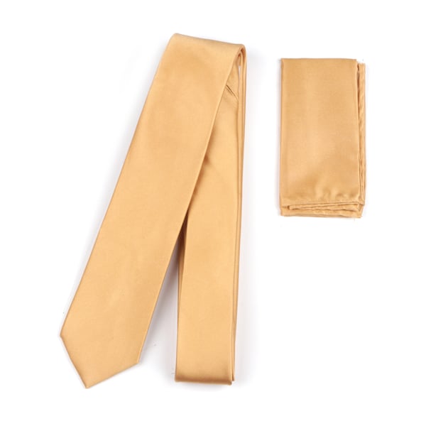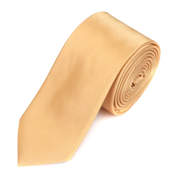 Plain gold satin skinny silk tie
