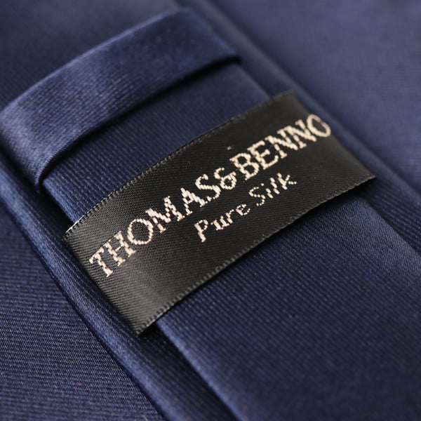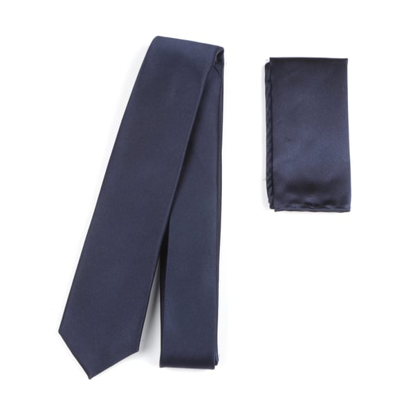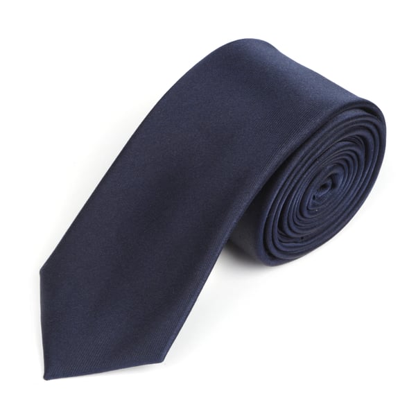 Plain satin finish navy skinny silk tie