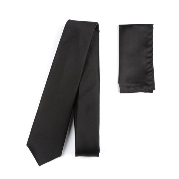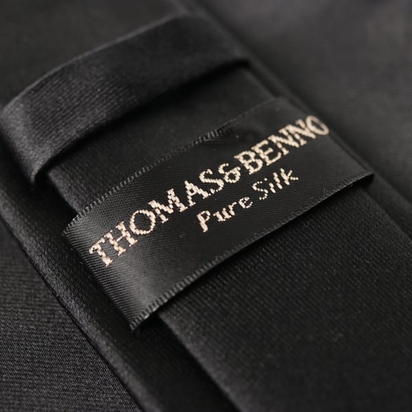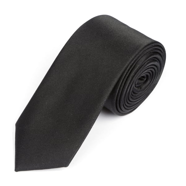 Plain black satin finish silk skinny tie