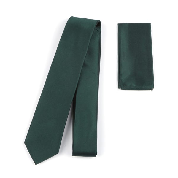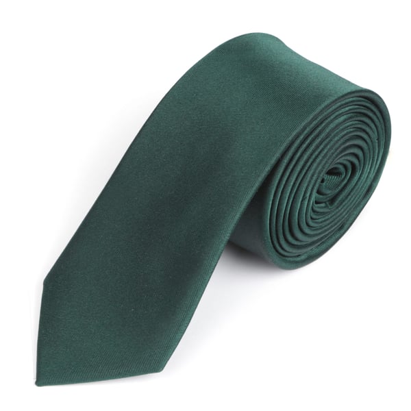 Plain satin finish bottle green skinny silk tie