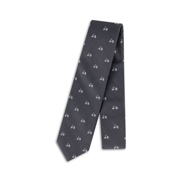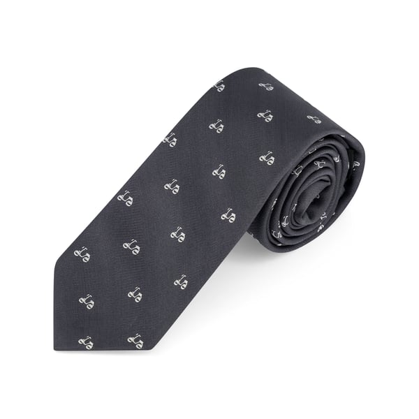 Charcoal Silk Tie w Woven White Vespa Design