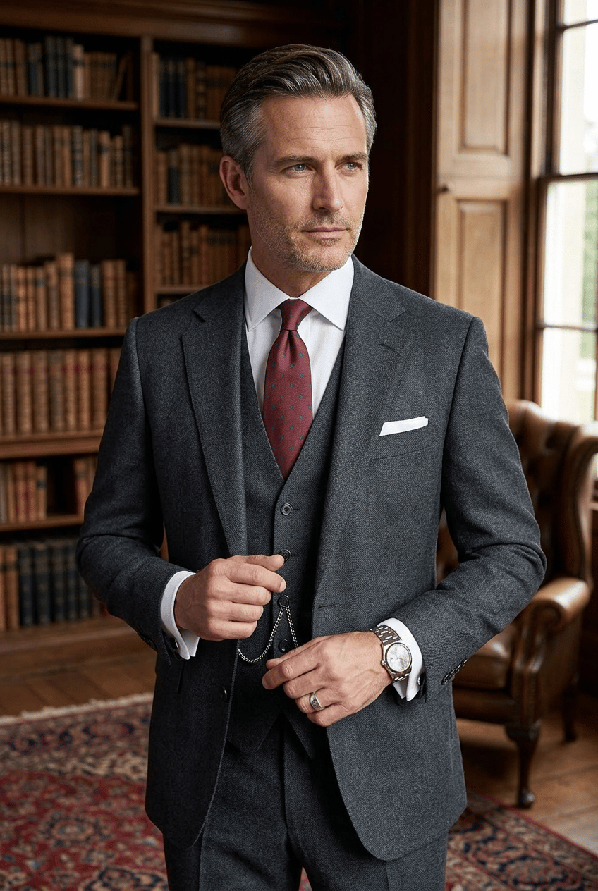 Charcoal Self Woven Paisley Tear Drop Tie & Pocket Square Set