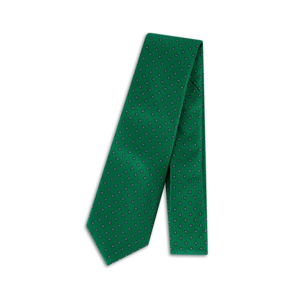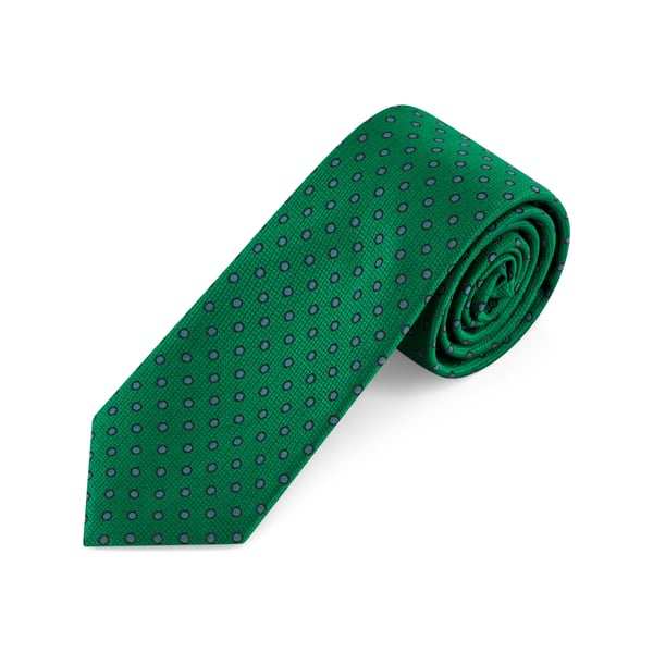 Emerald Green Silk Tie w Blue Jacquard Polka Dots