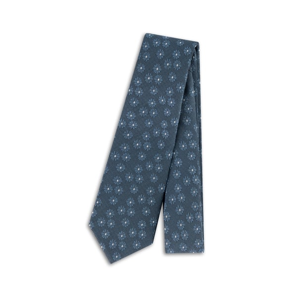 Metallic Blue Silk Tonal Daisy Tie with White Dot Accent
