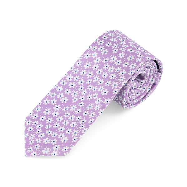 Lilac Silk Woven White Daisy Tie