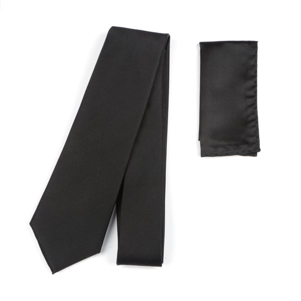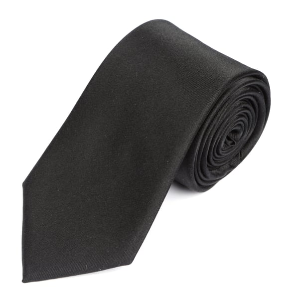 Plain satin finish black silk tie