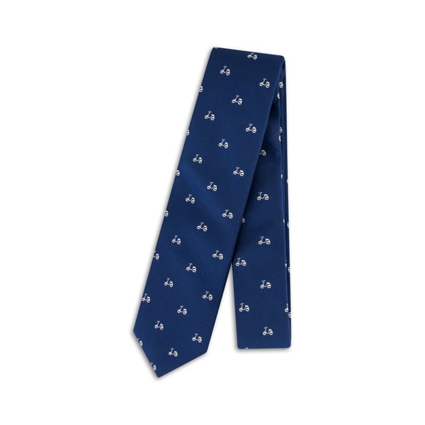 Navy Silk Tie w Woven White Vespa Design