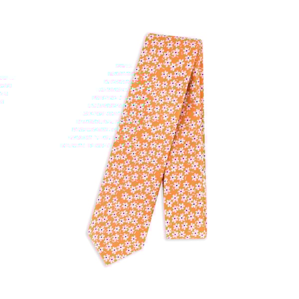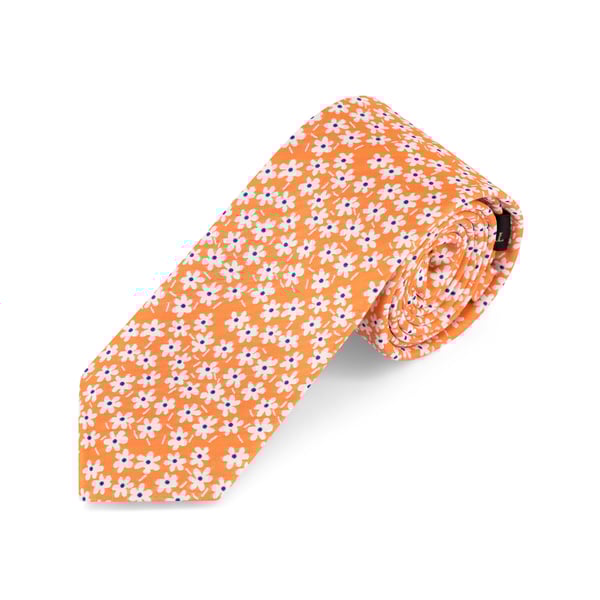 Orange Silk Woven White Daisy Tie