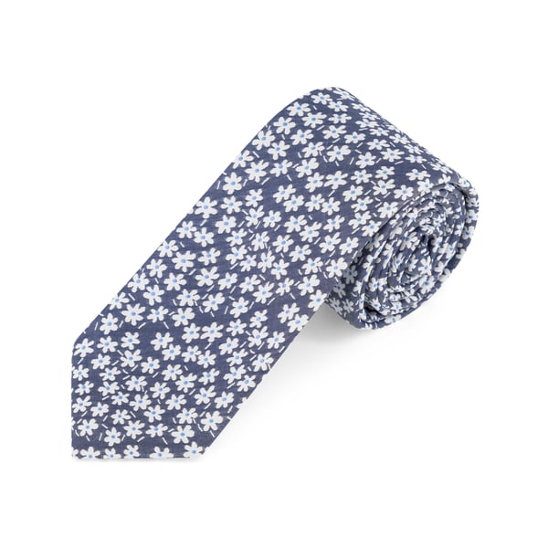 Navy Silk Woven White Daisy Tie