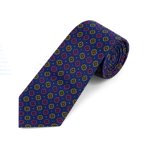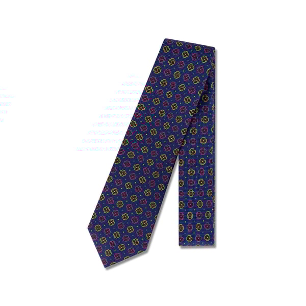 Navy Floral Medallion Silk Tie
