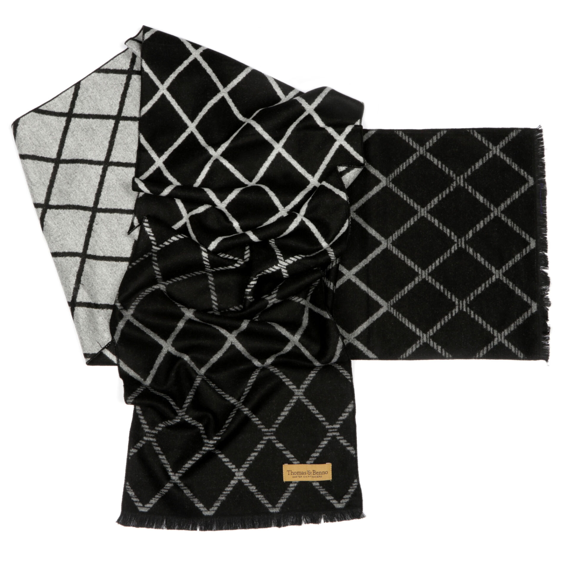 Wrap yourself in elegance with our luxurious men’s scarf. Use either the classic black and grey or stylish white and black side, this scarf is designed to elevate your outfit effortlessly. Made with a premium cashmere feel, it not only keeps you warm but also adds a touch of sophistication to your look. Stay cozy and fashionable with this must-have accessory.