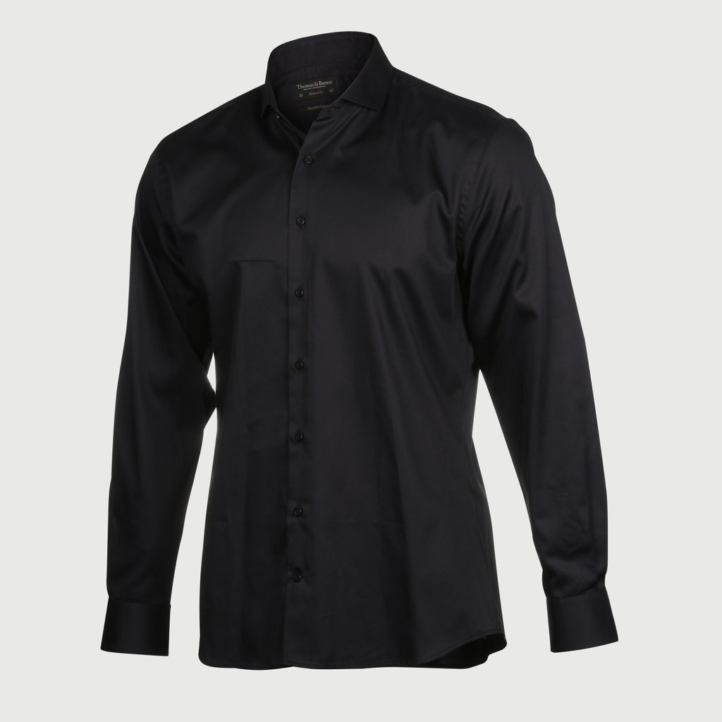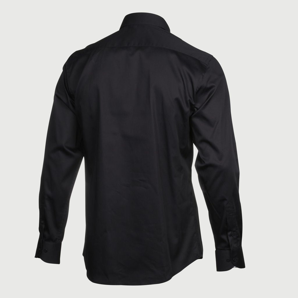 Introducing our black poplin full tailored fit shirt. Made from 100% cotton, this sleek and stylish shirt features a full cut away collar and single cuff design. With removable collar stays, this shirt offers versatility and comfort. Perfect for any occasion, this shirt is a must-have addition to your wardrobe.