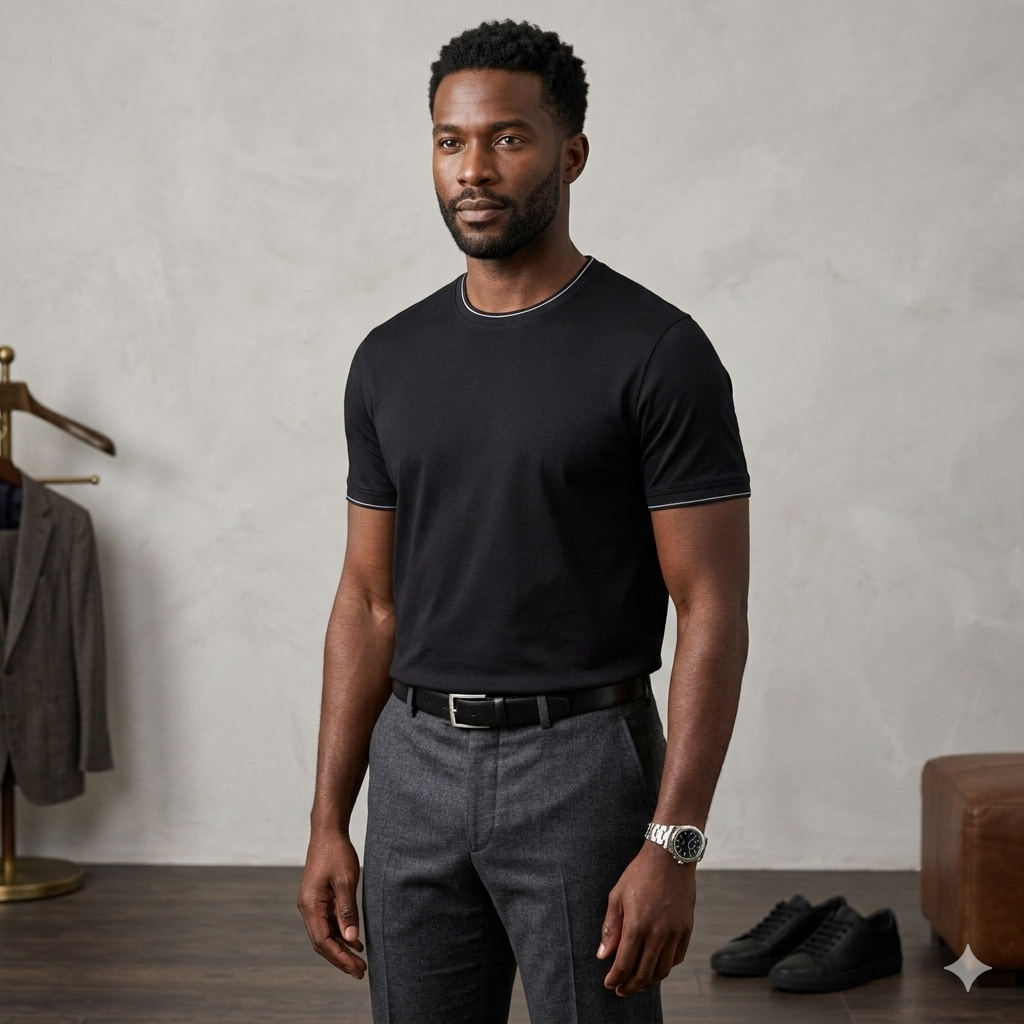 - Subtle texture that enhances the tee’s rich black tone