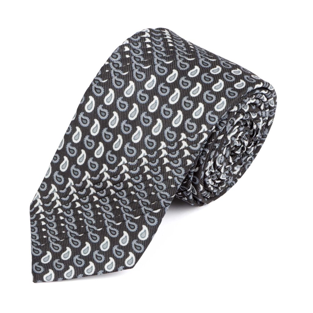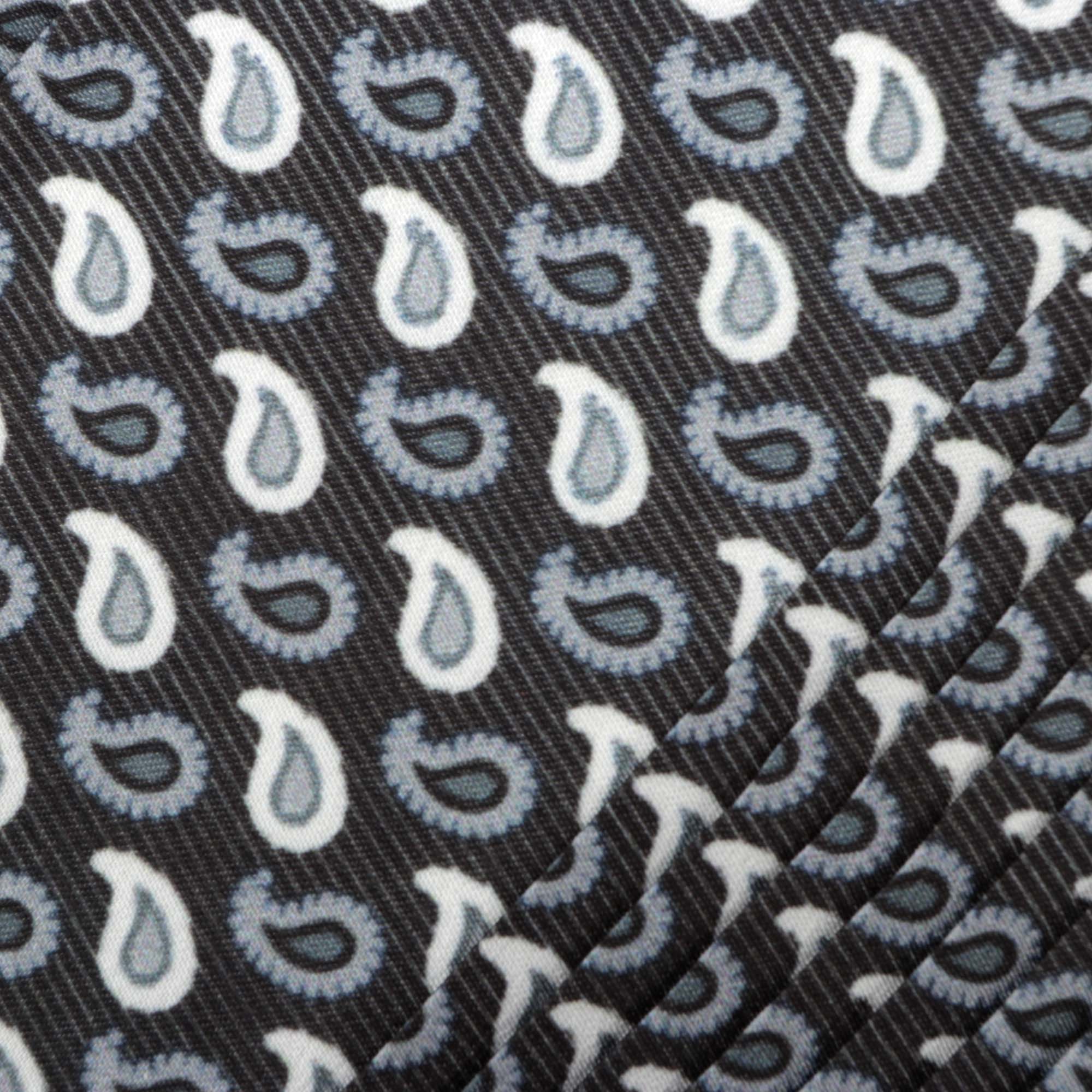 Elevate your outfit with this sophisticated black tear drop paisley tie. Crafted to perfection, this tie is the epitome of style and elegance. Complete your look with the matching pocket square and add a touch of finesse with the pleated design. Make a statement at any event with this timeless accessory.