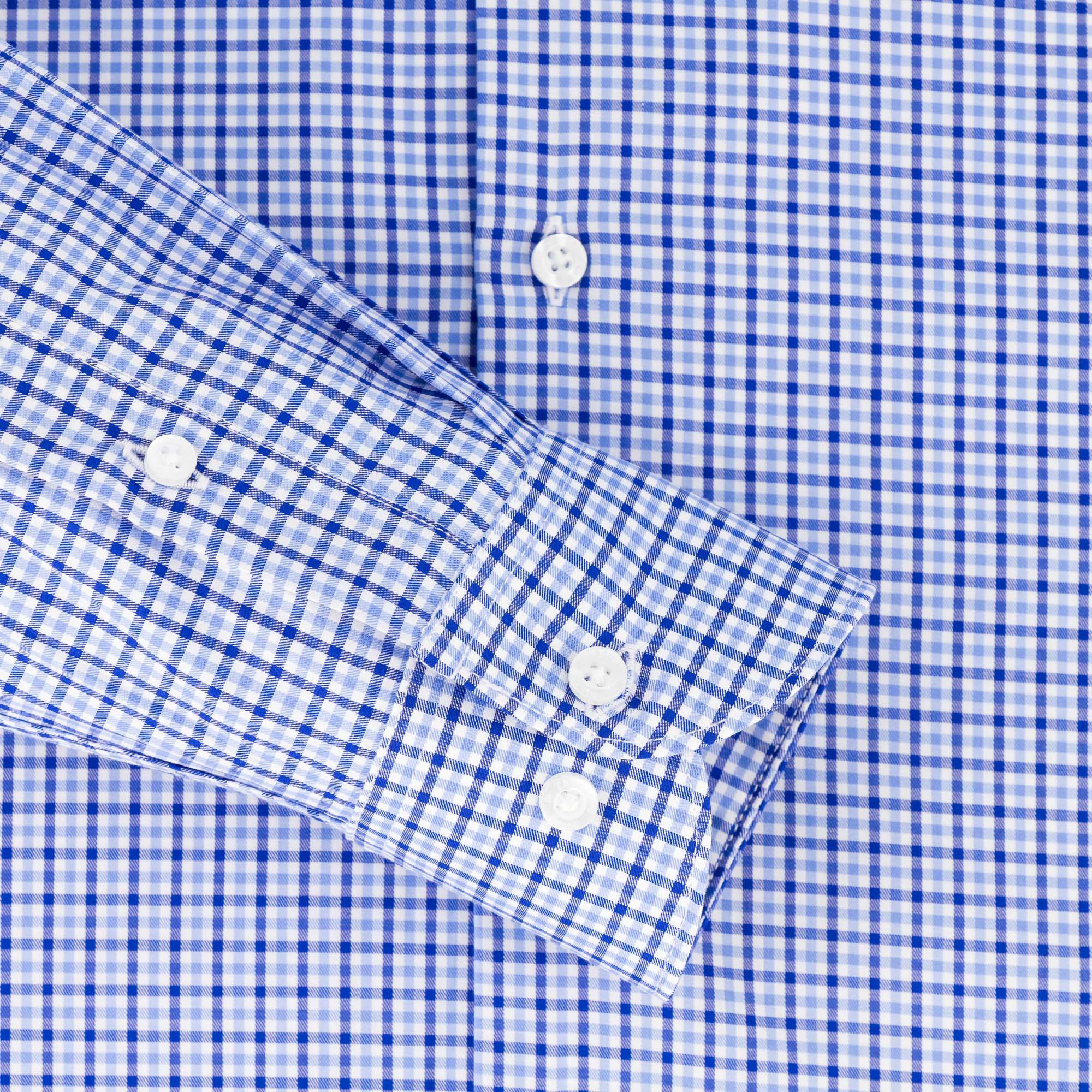 Blue Gun Check Cotton Dress Shirt | Tailored Fit