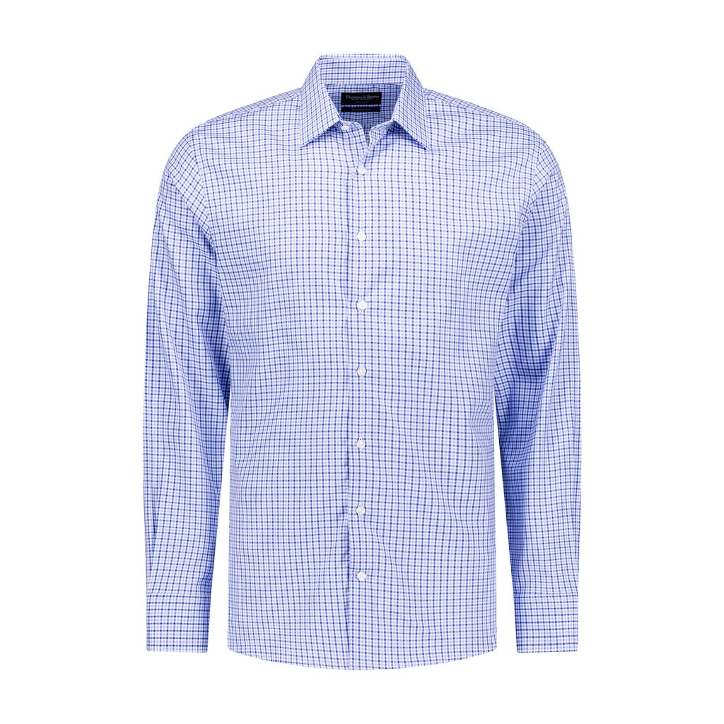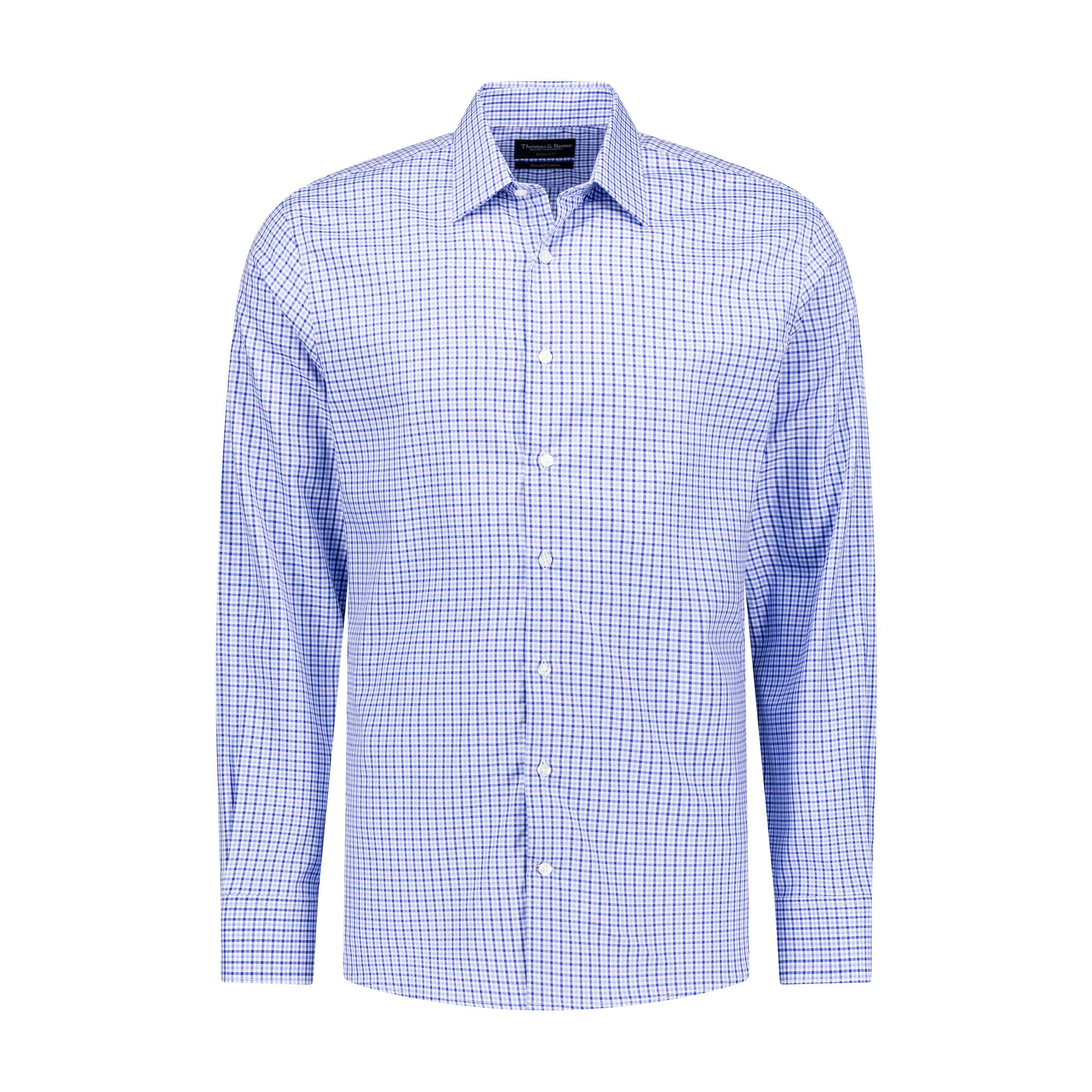 Refine your formal attire with our men’s blue gun check tailored fit cotton dress shirt. crafted from 100% premium cotton, this shirt features a classic blue gun check pattern, offering timeless sophistication for the discerning gentleman. The tailored fit ensures a sharp, streamlined silhouette, while the semi cut-away collar with removable stays provides versatility for both professional and formal occasions. Constructed with French arm and side seams for superior durability and side gussets to maintain shape and strength, this shirt blends style with practicality. Machine washable at 30°C for easy maintenance, it is recommended to iron while damp and avoid tumble drying to preserve its pristine condition. Ideal for the modern professional seeking refined craftsmanship and enduring quality.