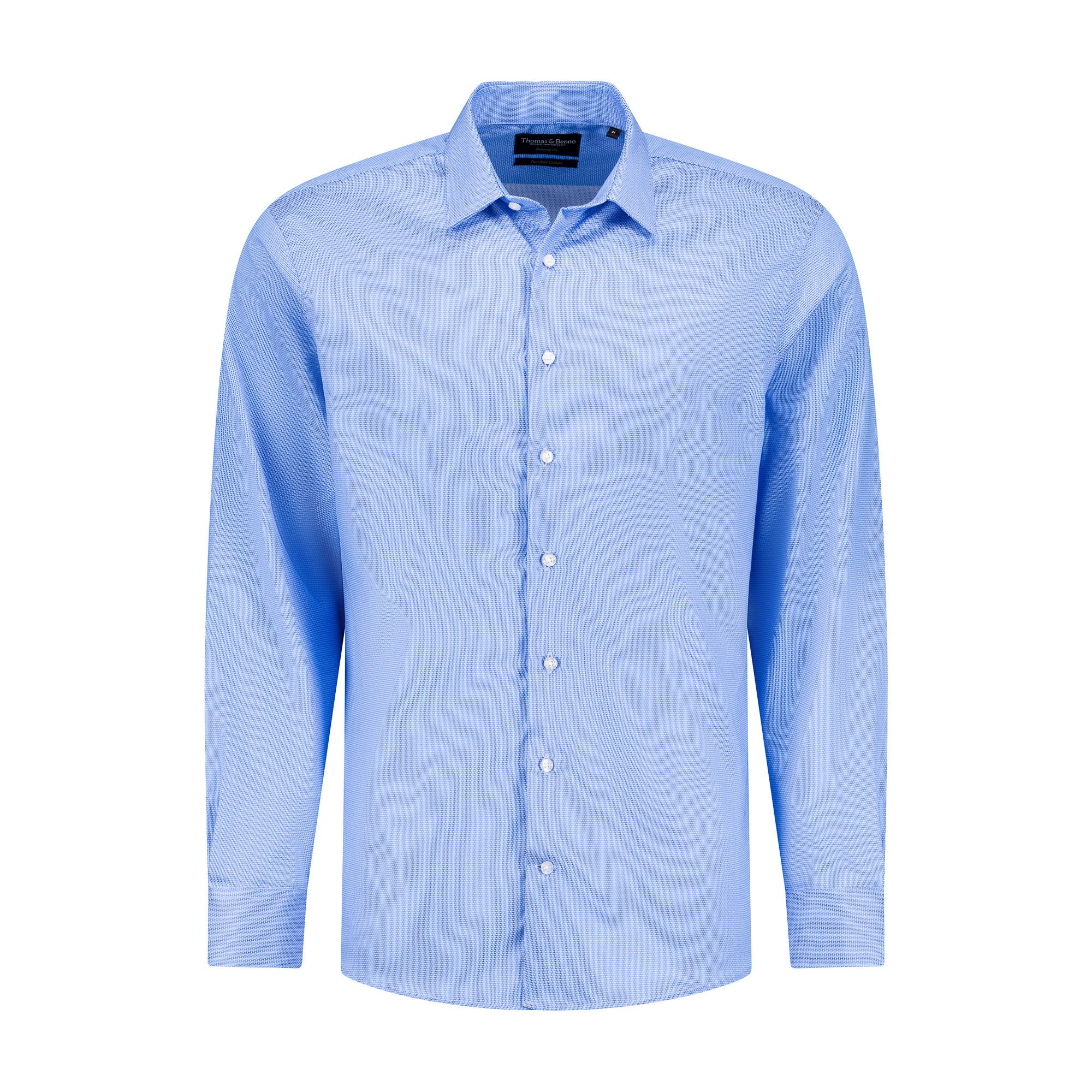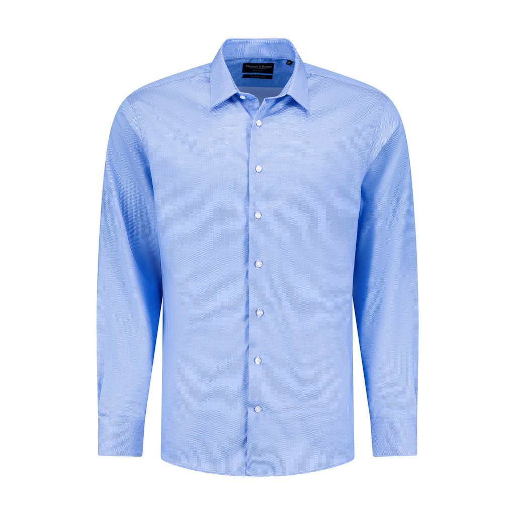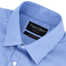 Refine your formal wardrobe with our men’s blue jacquard tailored fit cotton dress shirt. Crafted from 100% premium cotton with an intricate jacquard weave, this shirt features a rich blue hue, offering sophisticated elegance for the discerning gentleman. The tailored fit delivers a sharp, streamlined silhouette, complemented by a semi cut-away collar with removable stays for versatility in business or formal settings. Designed with French arm and side seams for superior durability and side gussets to maintain shape and strength, this shirt combines style with practicality. Machine washable at 30°C for easy care, it is recommended to iron while damp and avoid tumble drying to ensure lasting quality. Perfect for the modern professional seeking refined craftsmanship and distinctive sophistication.