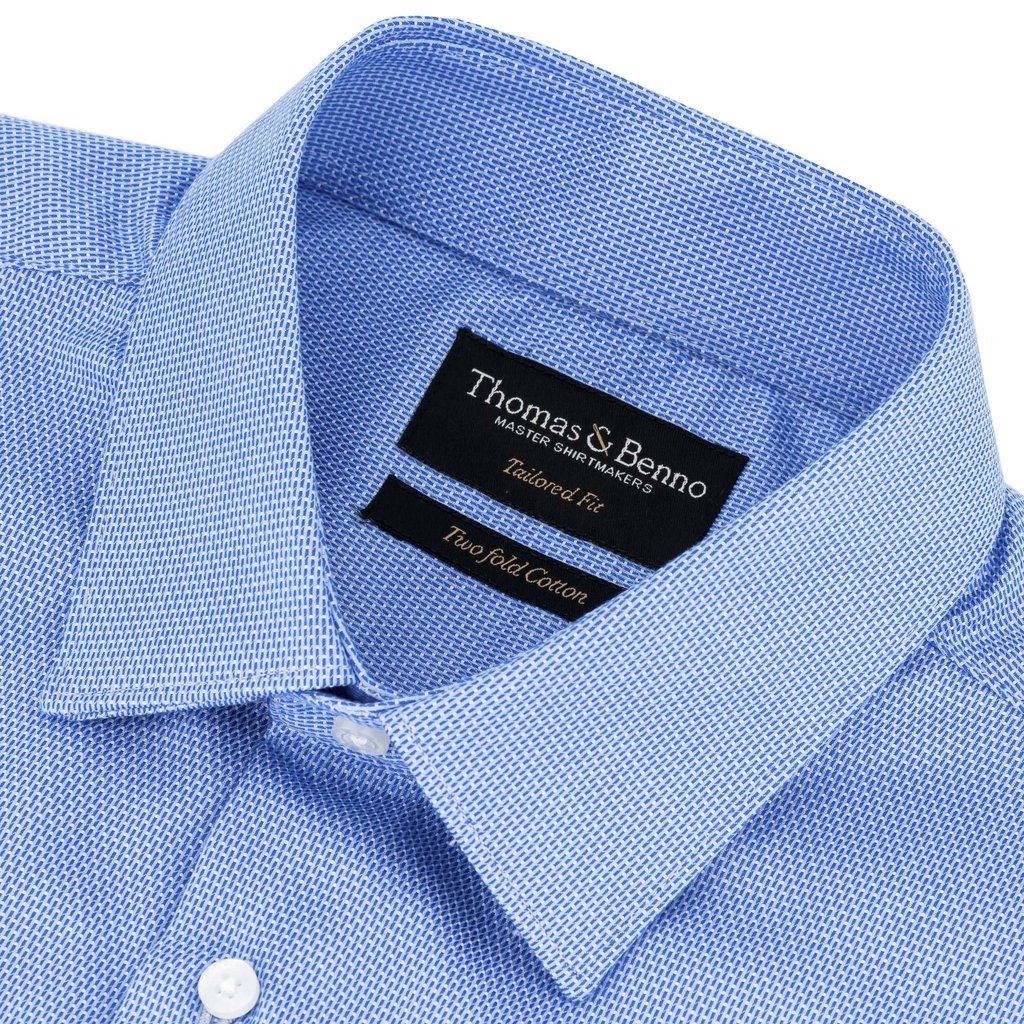 Blue Jacquard Cotton Dress Shirt | Tailored Fit