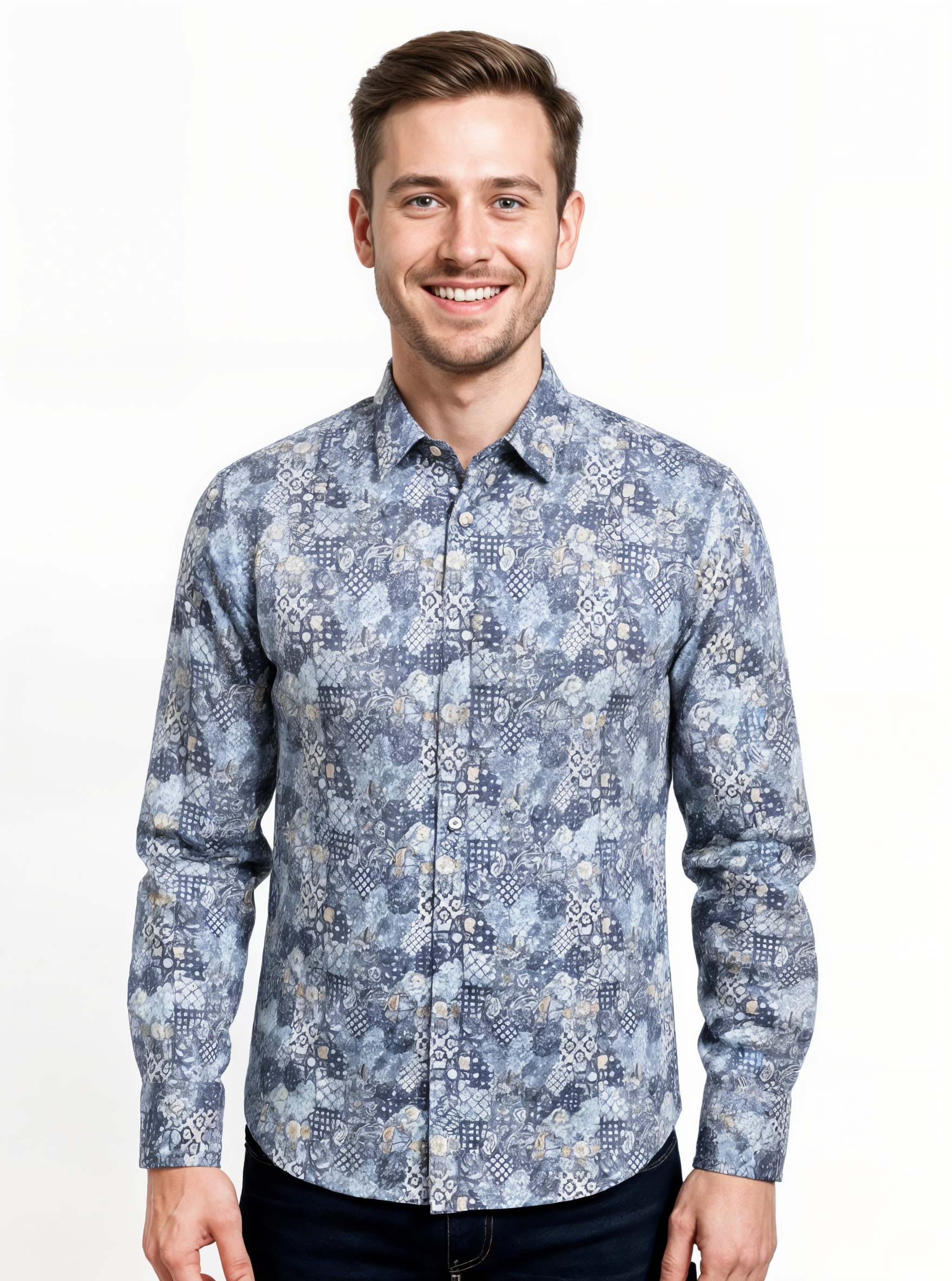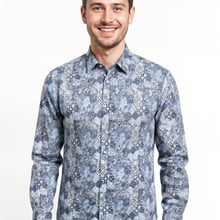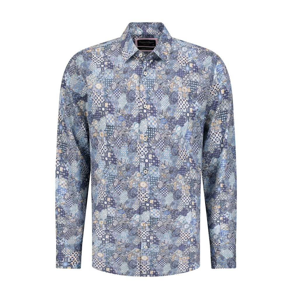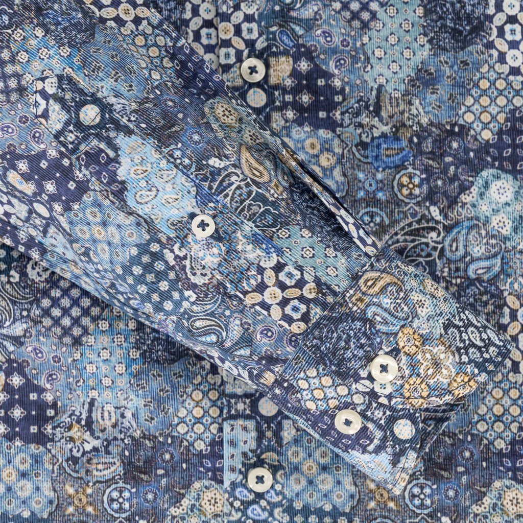 Blue Paisley Patchwork Cotton Shirt | Tailored Fit
