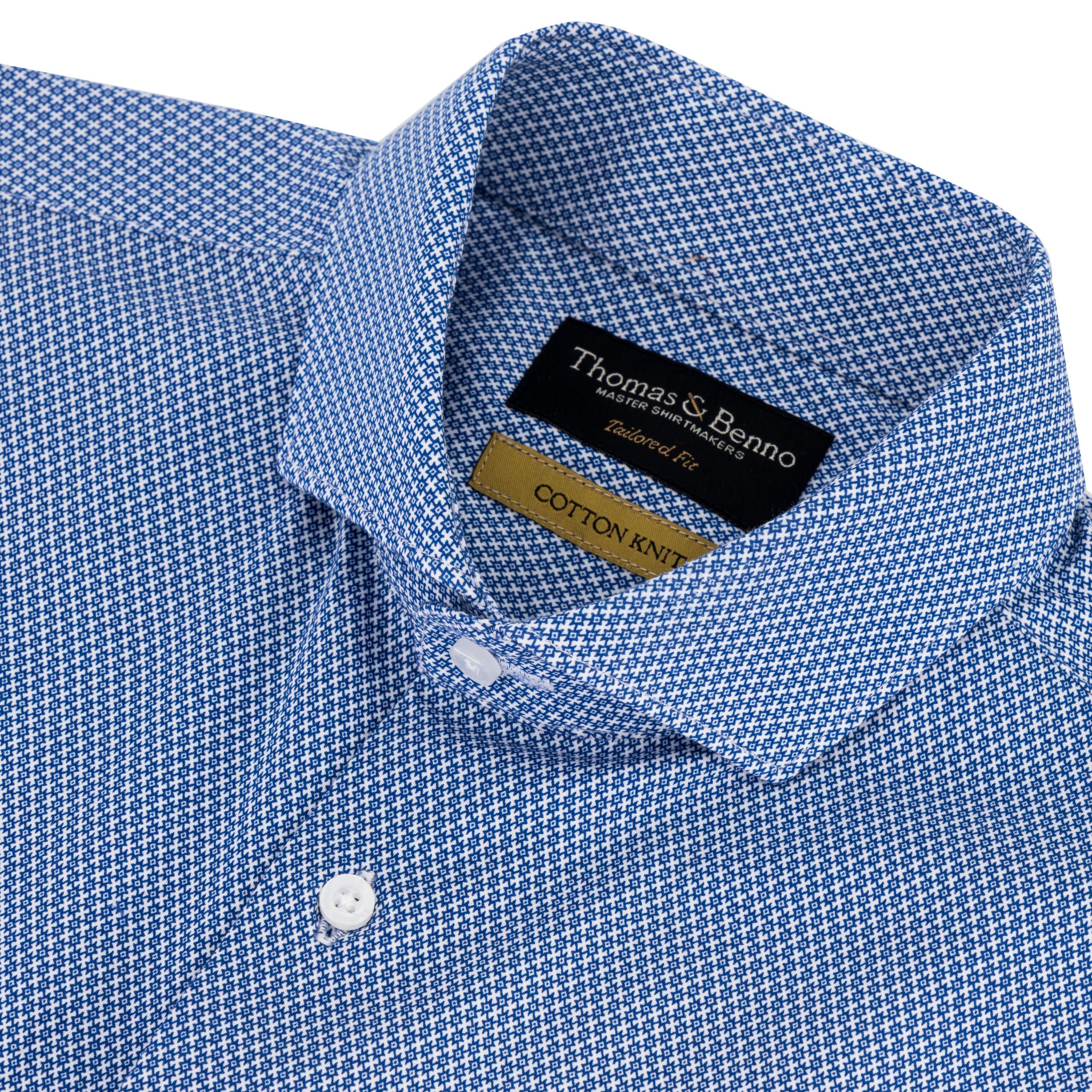 Blue Star Pattern Cotton Knit Dress Shirt | Tailored Fit