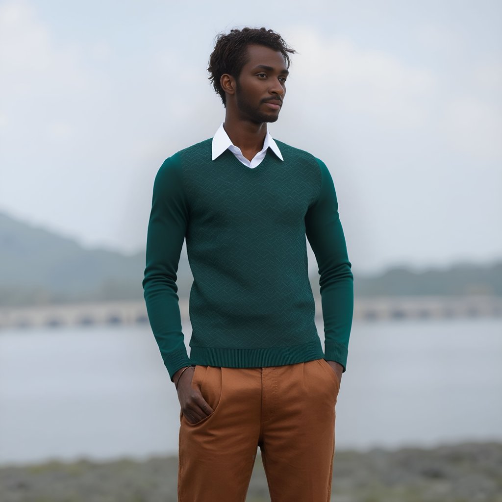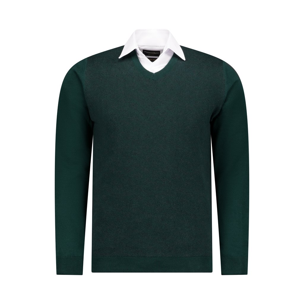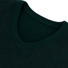 This bottle green V-neck jersey is a timeless wardrobe staple, crafted from 100% combed cotton for a soft, breathable feel. The clean silhouette is complemented by ribbed detailing at the collar and cuffs, offering a refined finish. Lightweight and versatile, it’s perfect for layering or wearing on its own. Easy to care for—machine wash at 30°C and avoid tumble drying to maintain its shape and texture.
