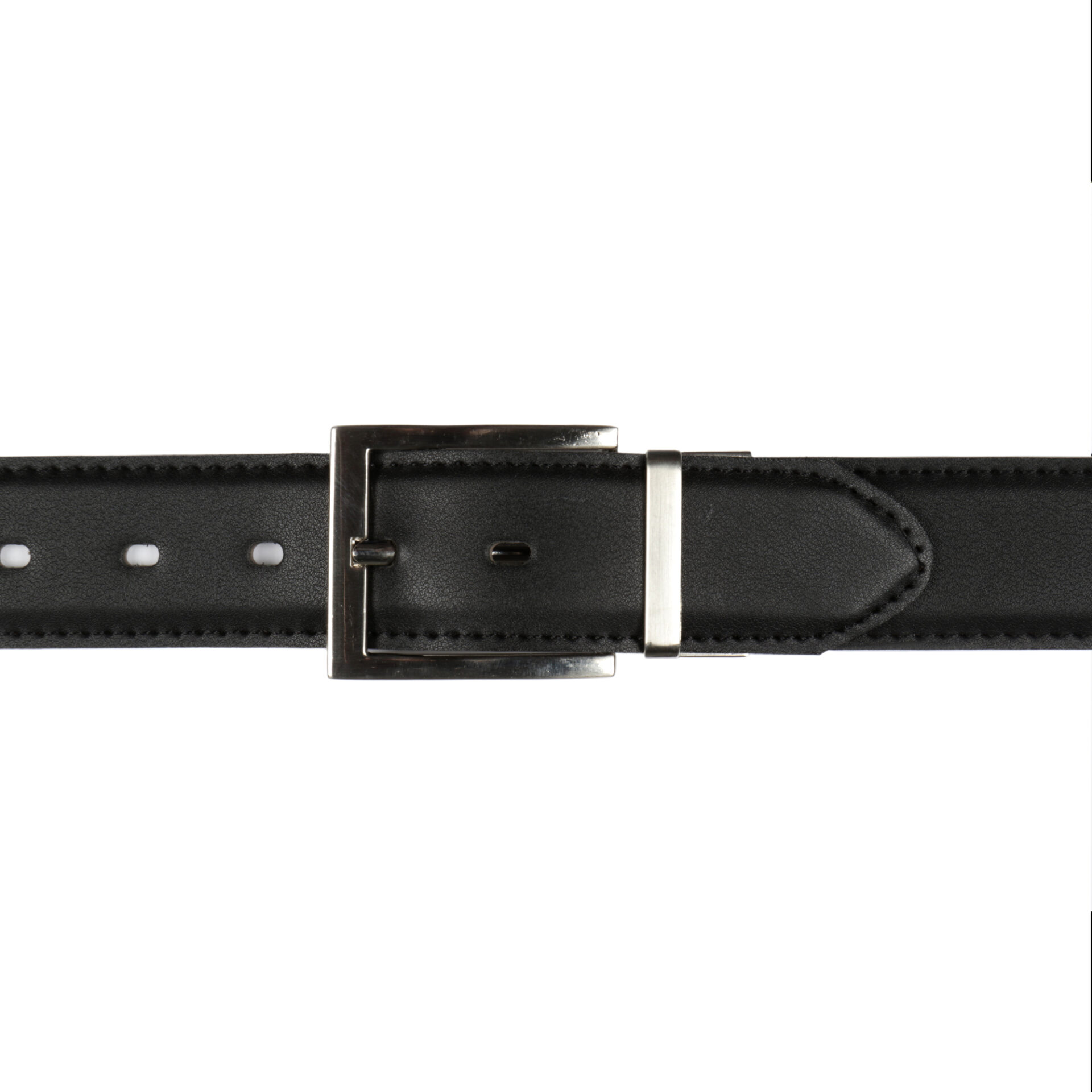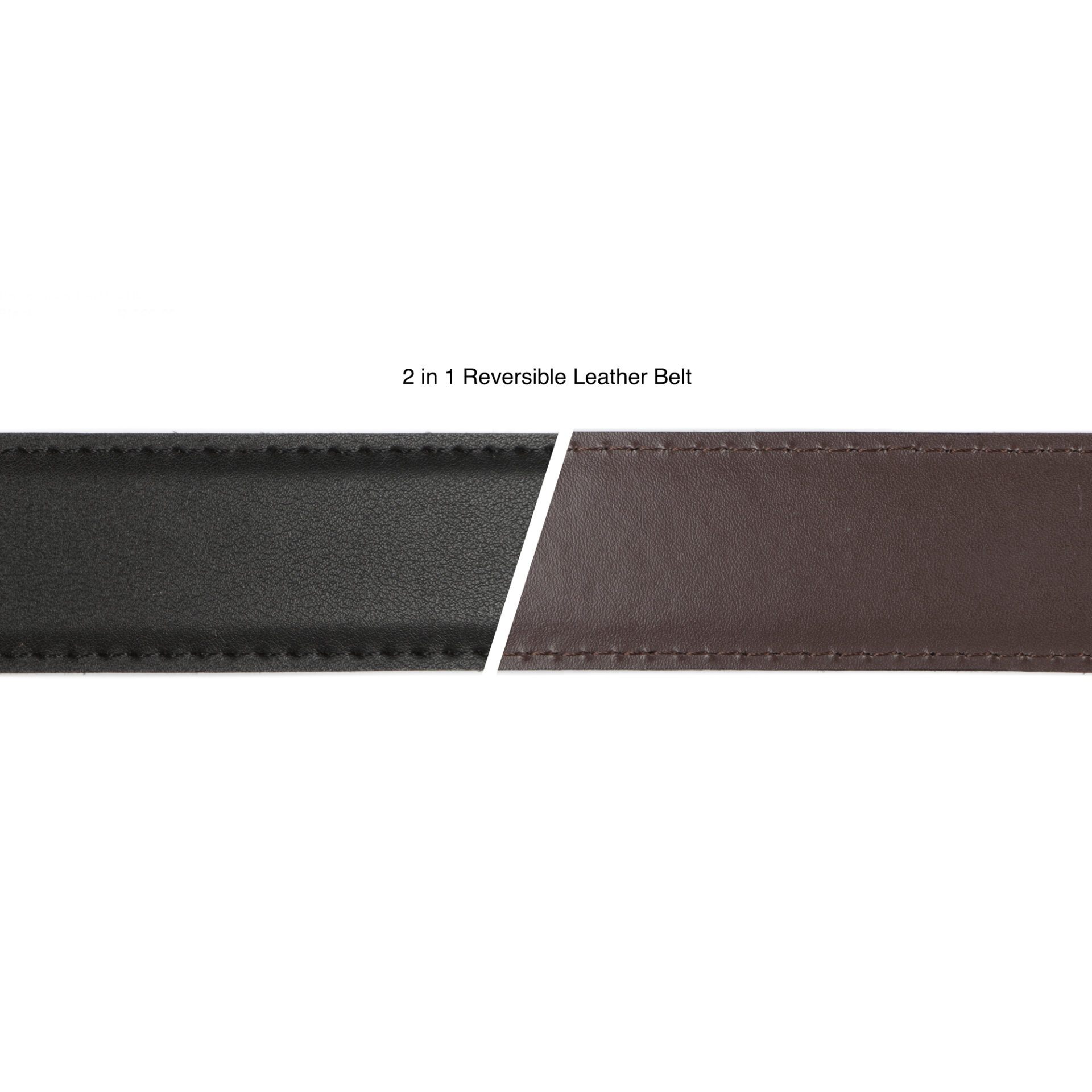 This versatile leather belt features a classic brown and black reversible design, complemented by a sleek brushed silver square twist buckle. A stylish and practical accessory for any wardrobe.