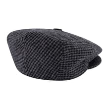 This newsboy cap is a refined blend of heritage style and contemporary flair. Crafted from premium tweed in a subtle check pattern of brown, blue, and beige, it features the timeless 8-panel construction with a buttoned crown. The interior is lined with a bold red fabric, adding a modern twist to its traditional exterior. Ideal for transitional weather, this cap is a versatile accessory that complements both smart and casual looks.
