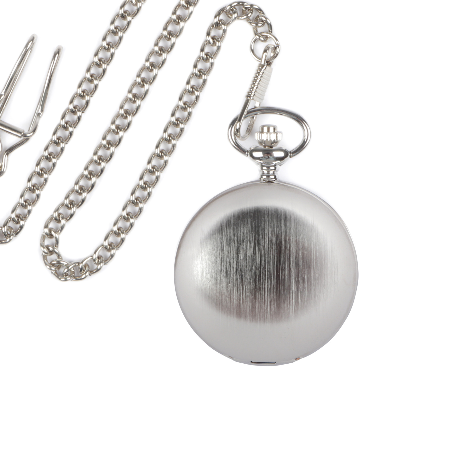 This brushed silver fob watch combines timeless elegance with practical design. Featuring a flip-down face cover and a secure button hook chain, it’s ideal for professionals or anyone seeking a classic accessory. The brushed finish adds a subtle sophistication, making it a perfect complement to waistcoats, jackets, or uniforms.