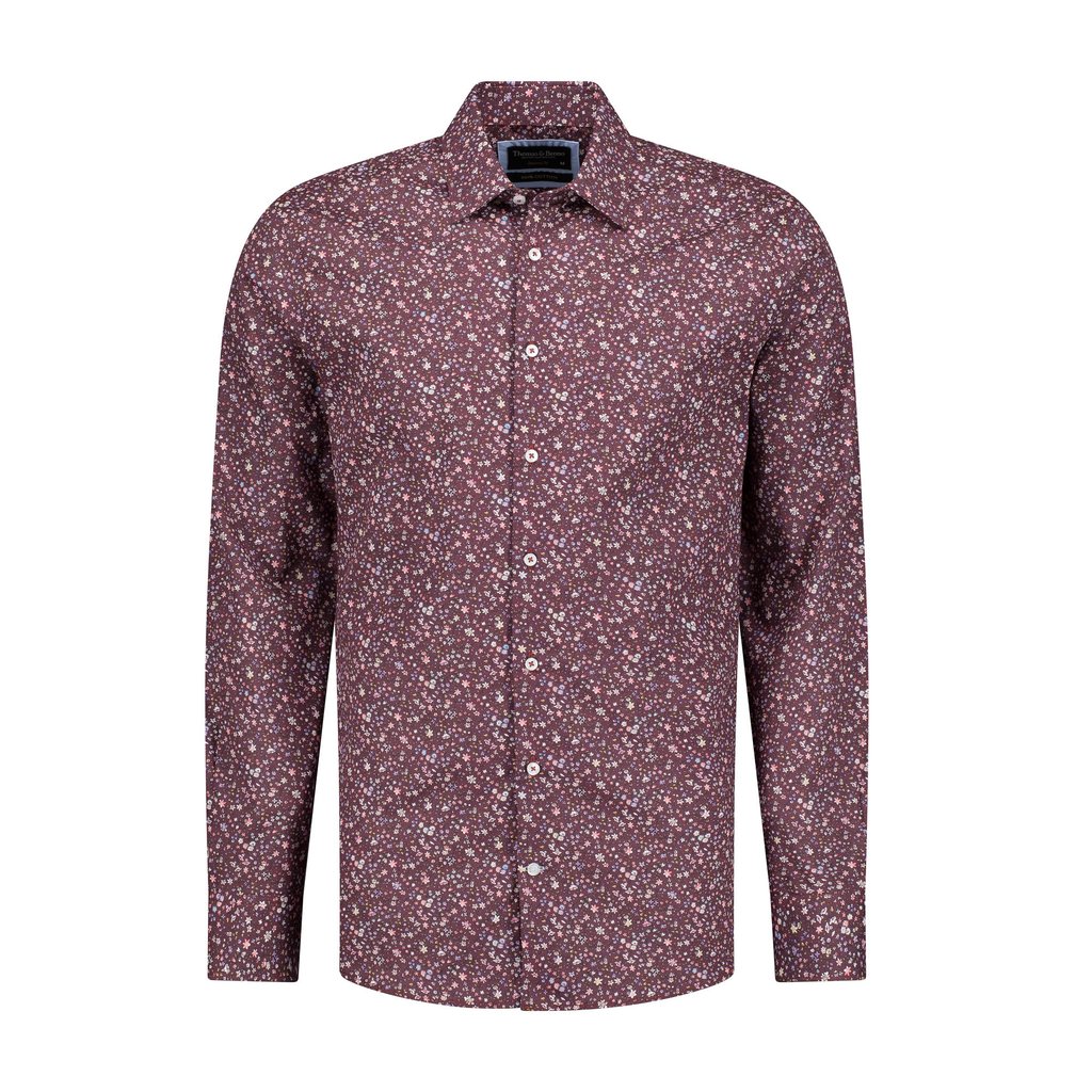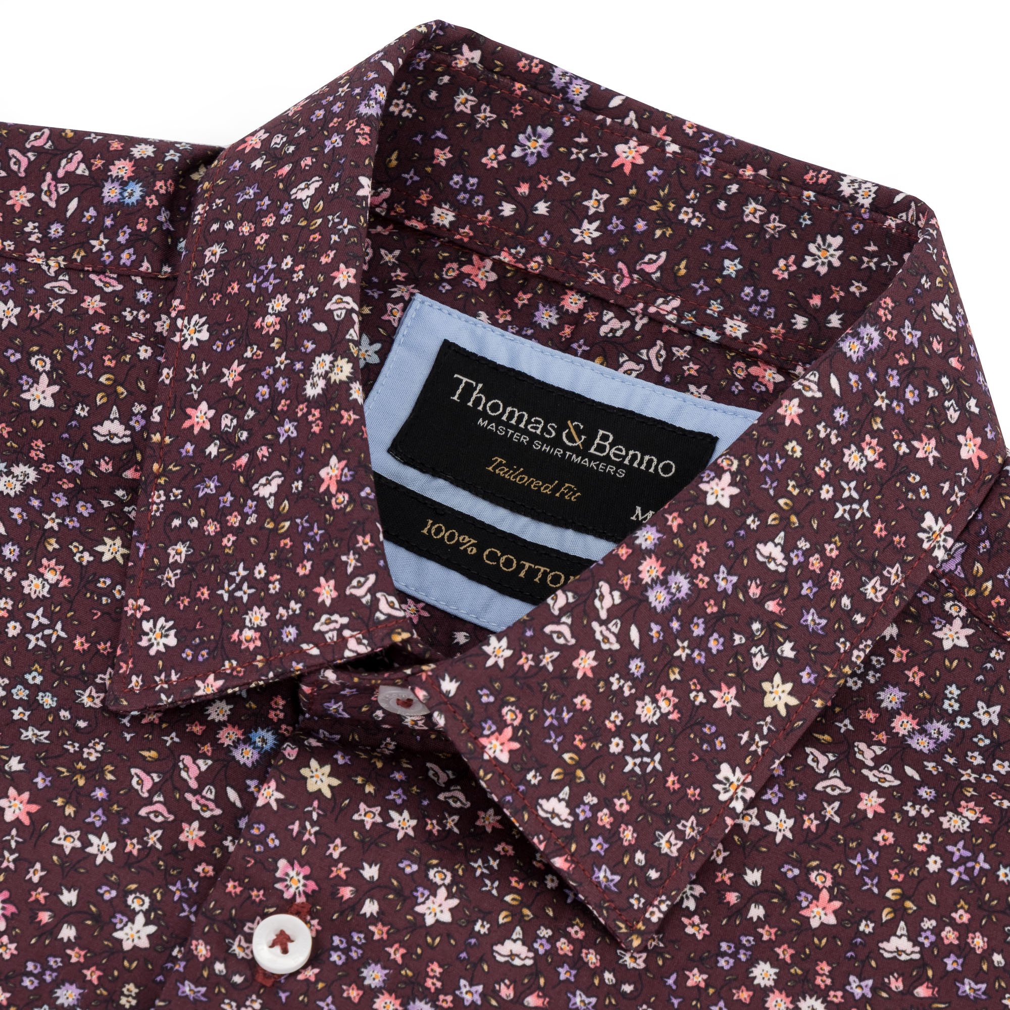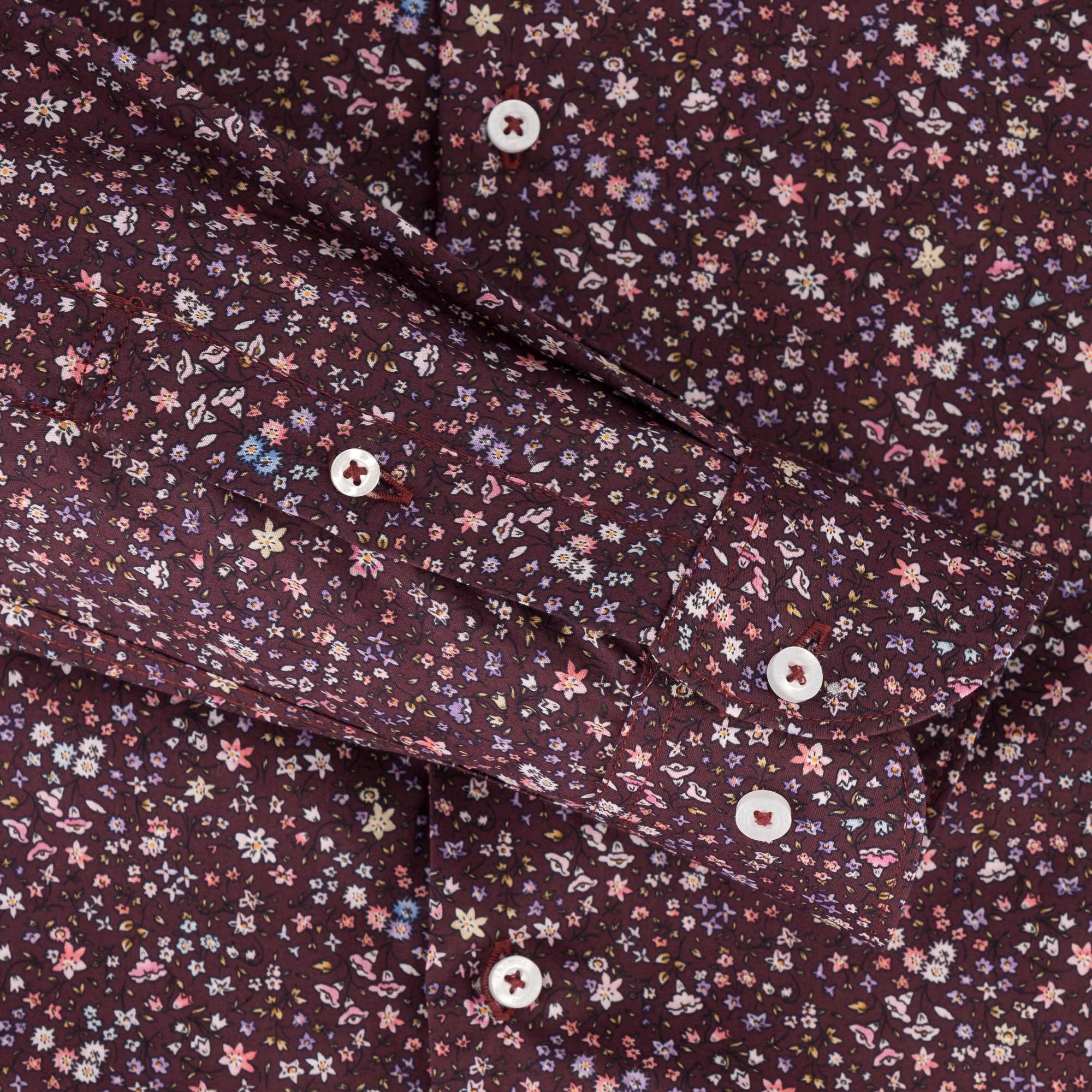 Burgundy Floral Print Cotton Shirt | Tailored Fit