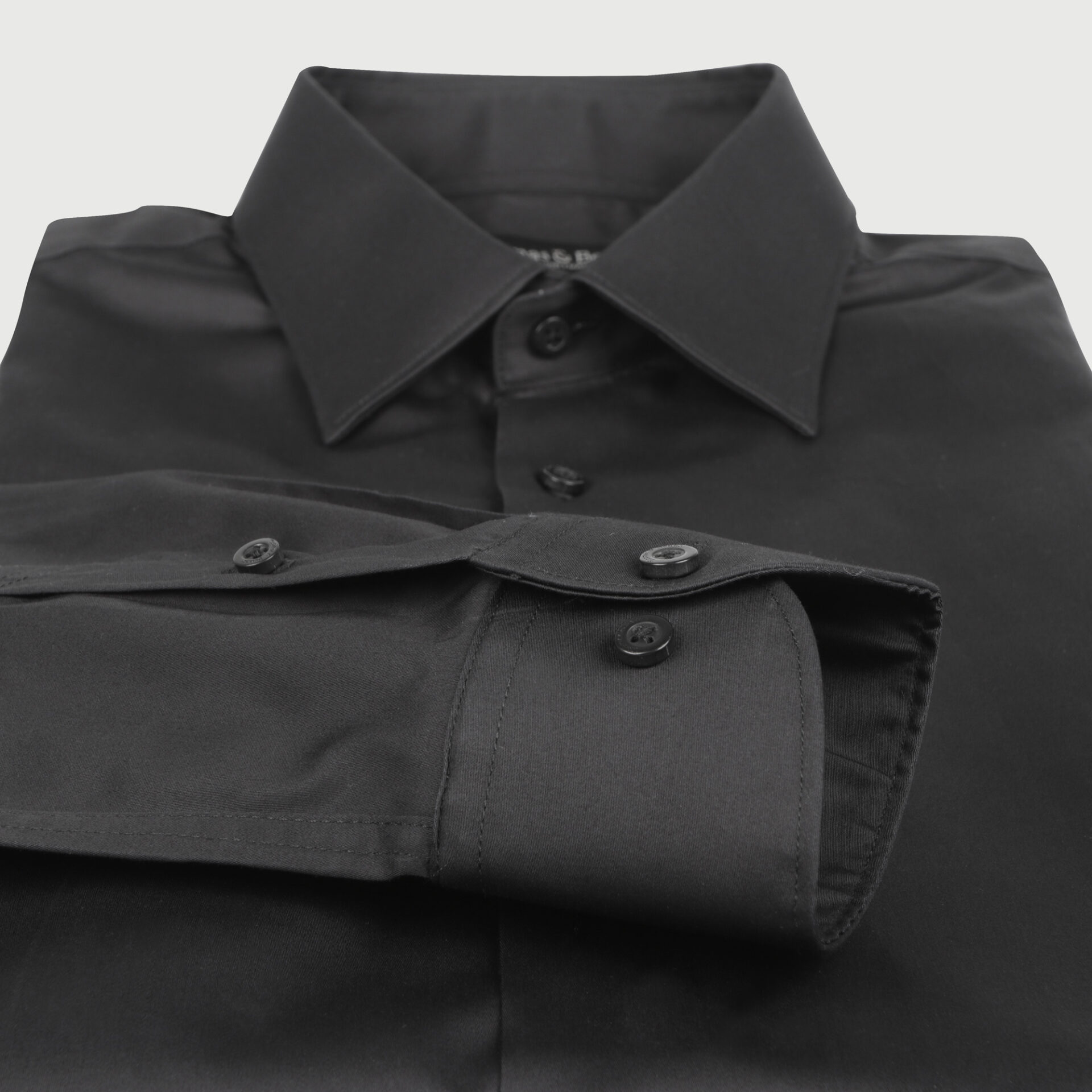 Step into the boardroom with confidence in our CEO Collection black shirt. Crafted from luxurious 120/2 cotton, this tailored-fit shirt features a semi cut away collar, single cuffs, and removable collar stays for a polished look. Elevate your style game with this sophisticated essential.