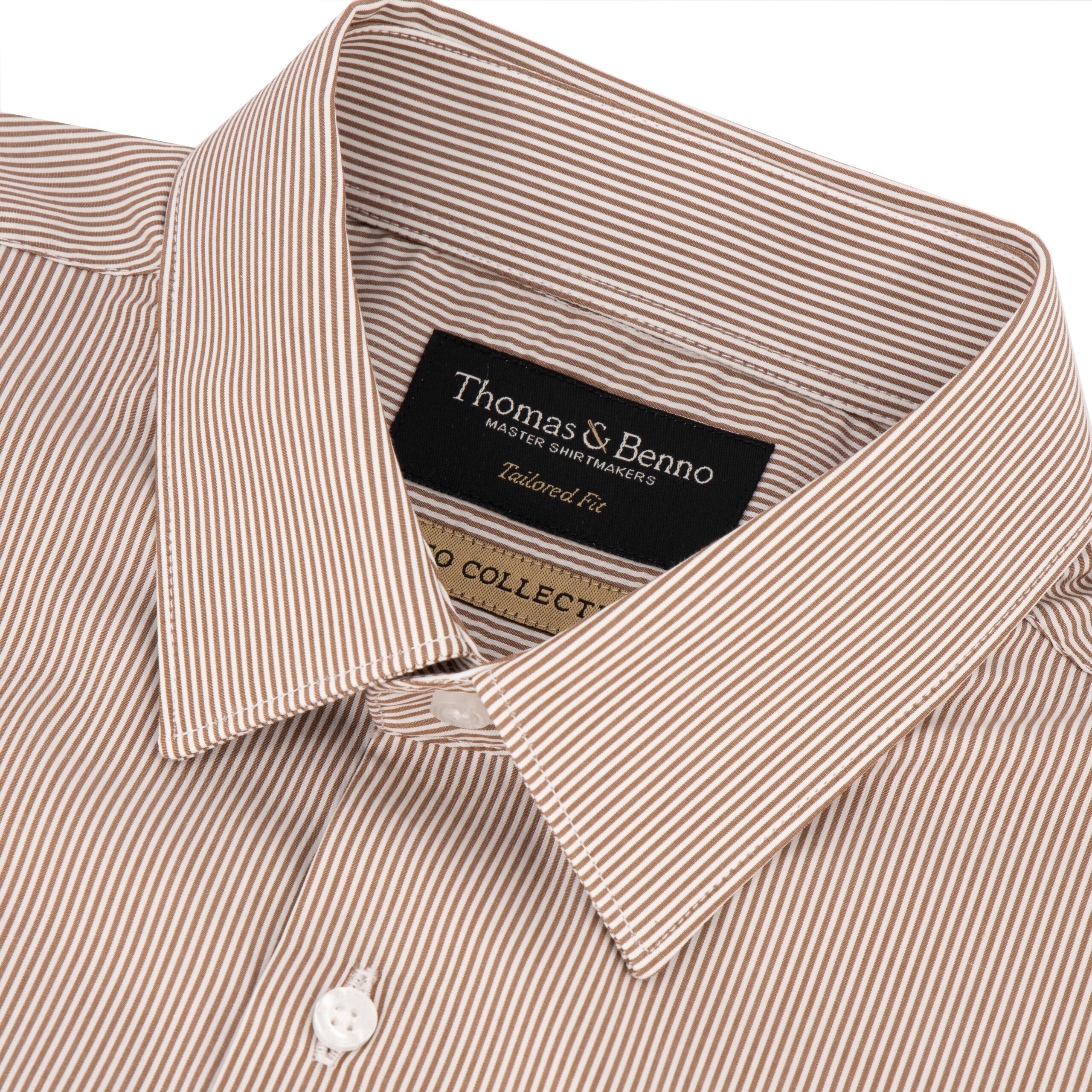 CEO Brown Pencil-Stripe Easy-Care Dress Shirt | Tailored Fit