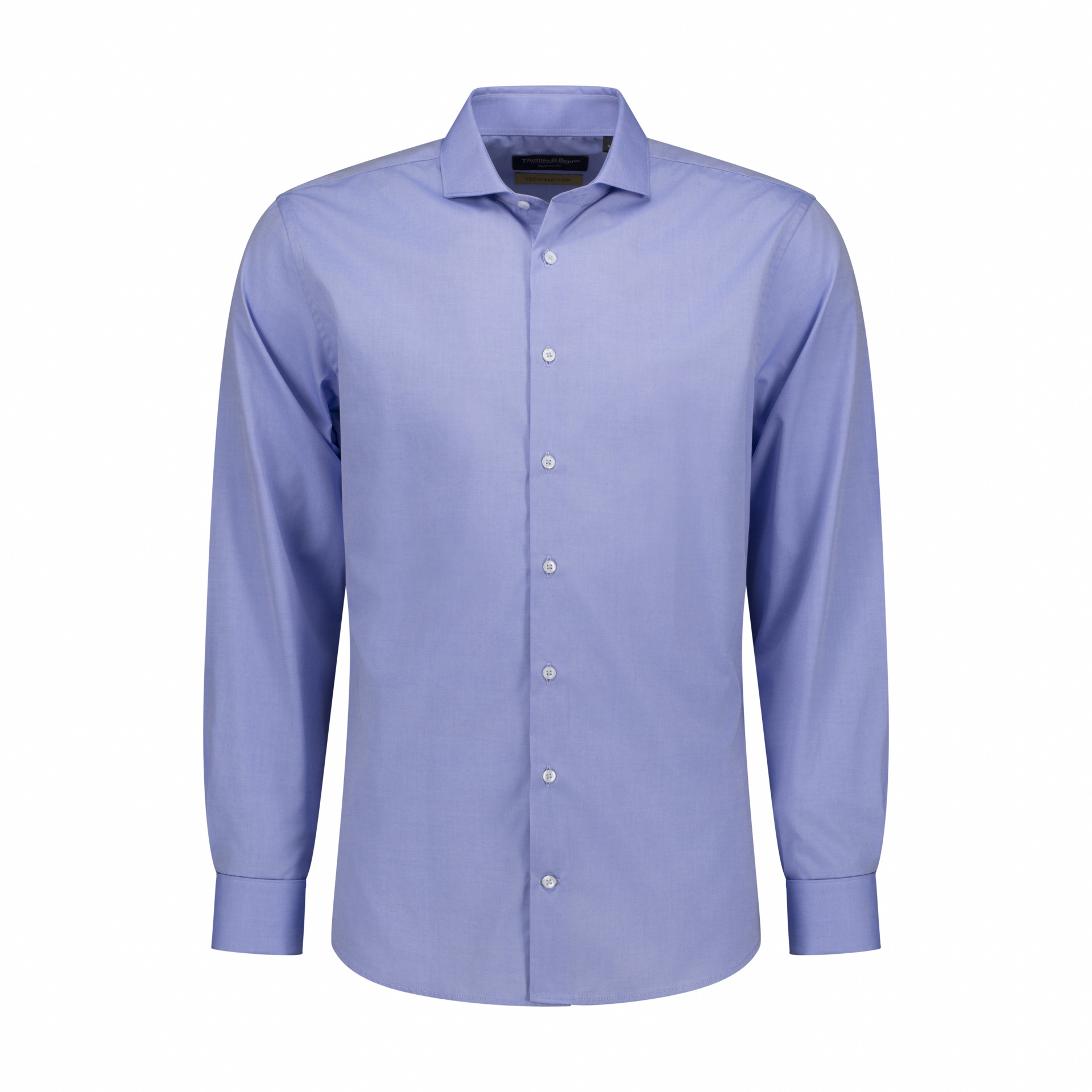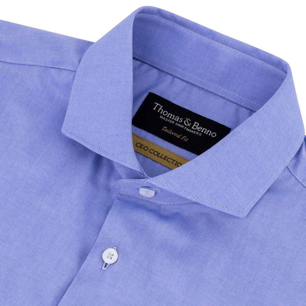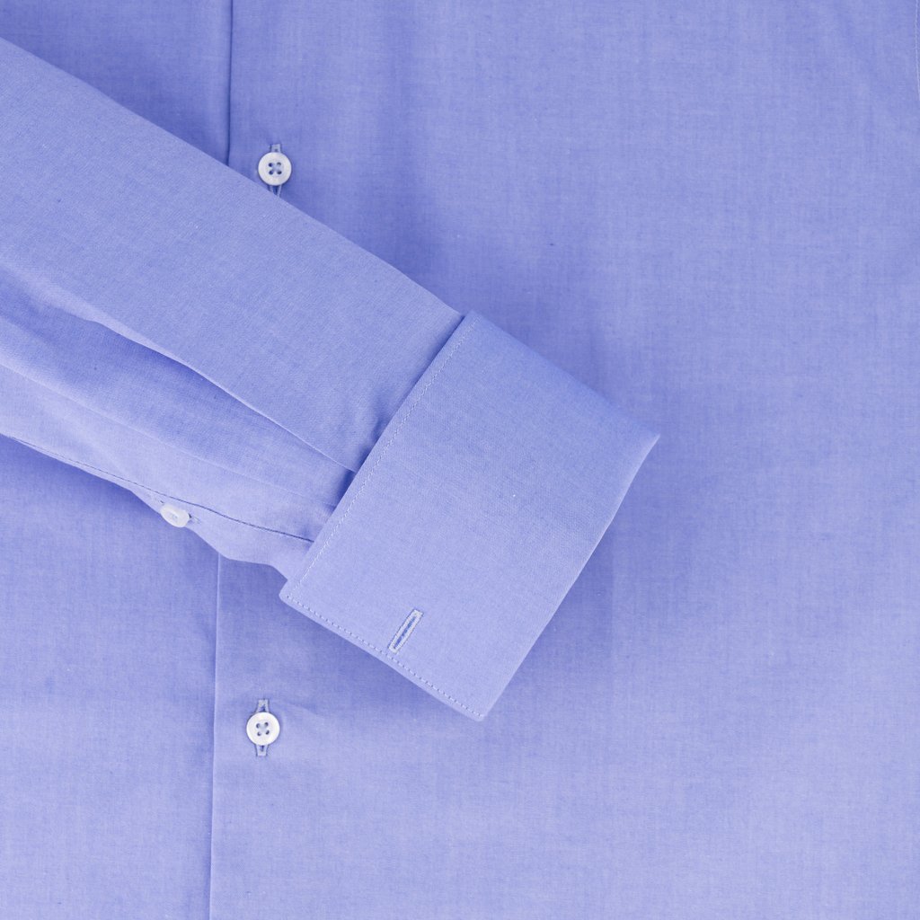 CEO Collection Easy Care 140/2 Fine Twill Mid Blue Dress Shirt w Double Cuffs | Tailored Fit