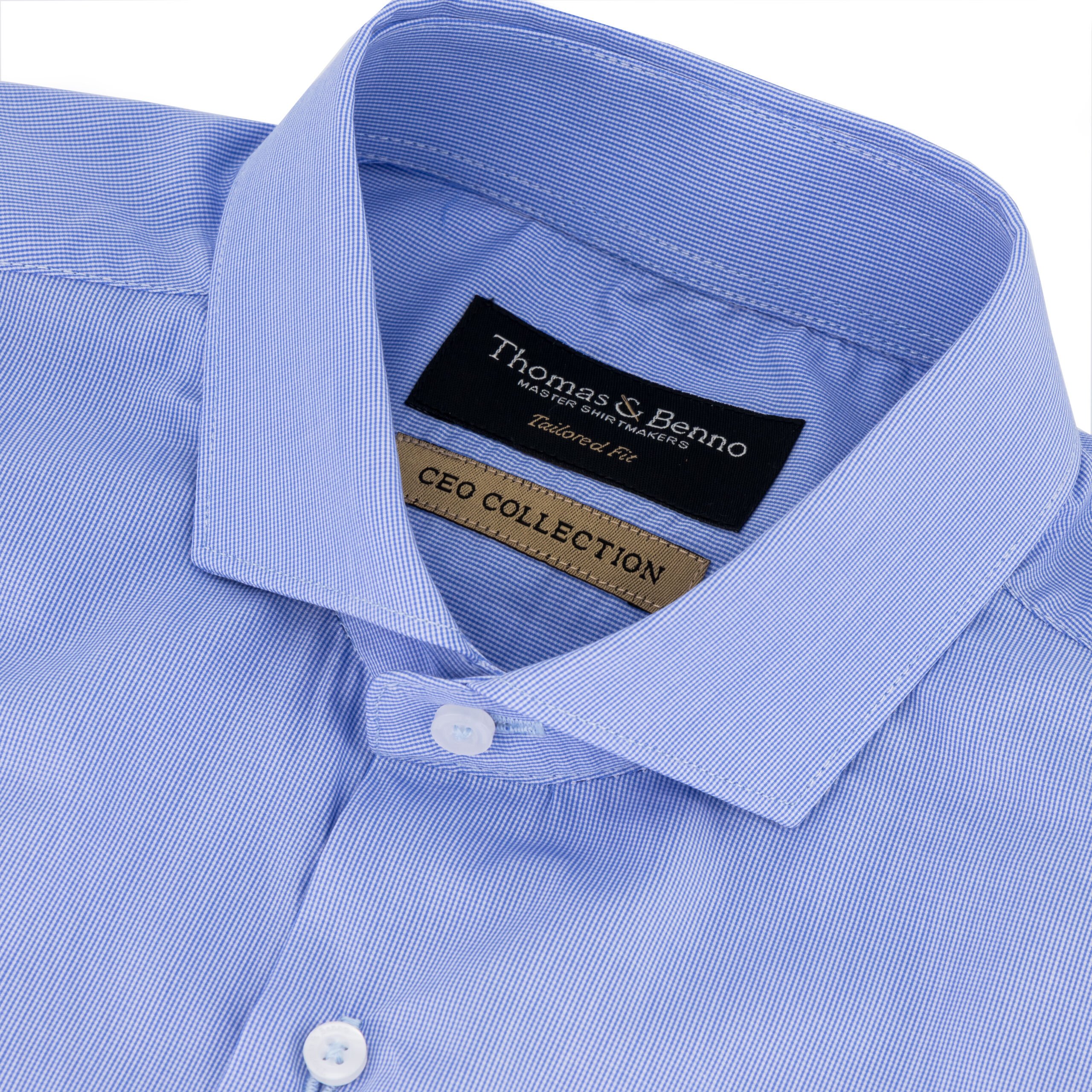 CEO Collection Light Blue Micro Check Dress Shirt | Tailored Fit