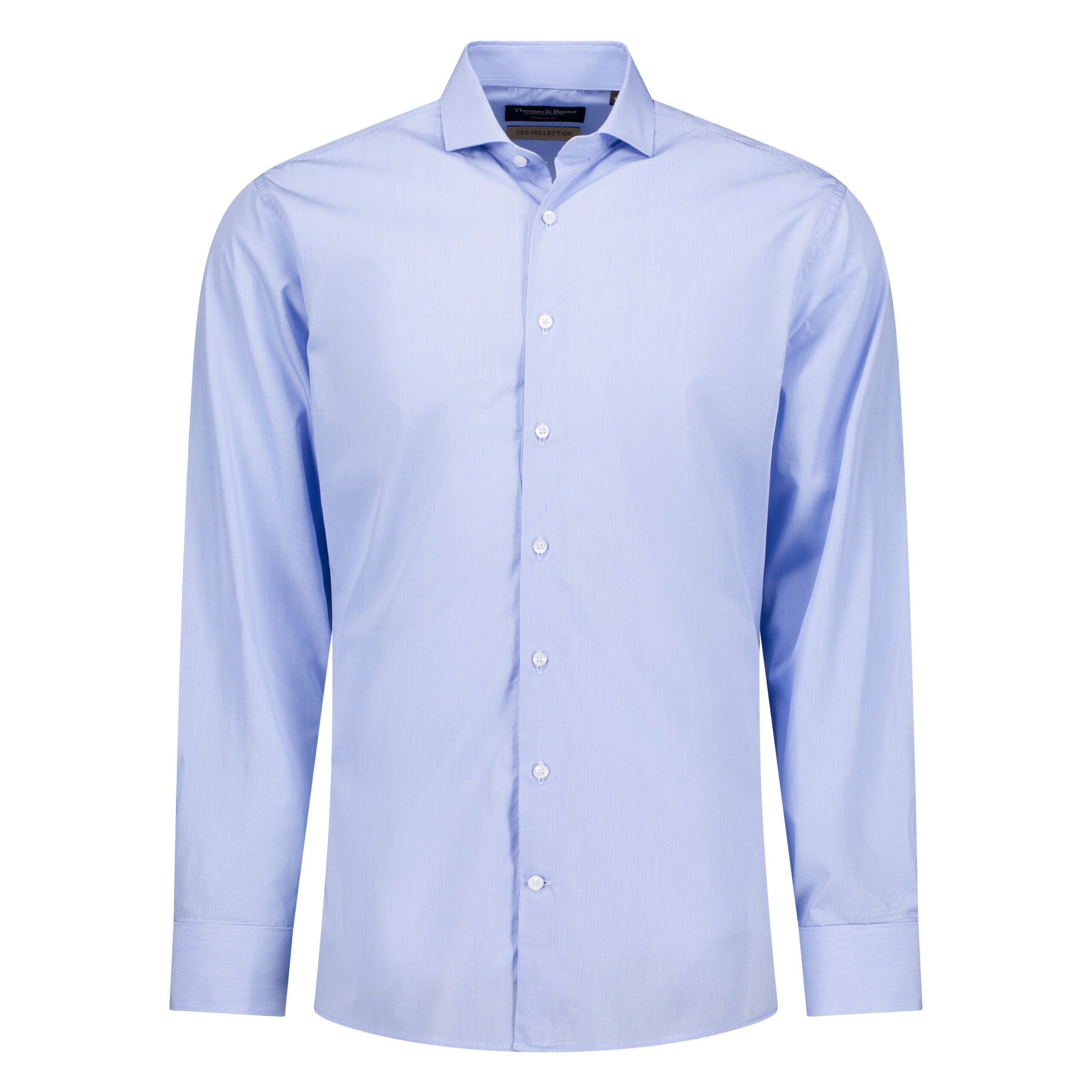 Step into the boardroom with confidence wearing this light blue micro check dress shirt from the CEO Collection. Crafted from the finest 100/2 cotton, this shirt provides a luxurious feel with the durability expected from high-end formal wear. The light blue micro check pattern offers a nuanced, professional appearance suitable for the discerning executive. The full cutaway collar adds a bold, modern touch, while the double cuff invites the addition of cufflinks for an extra layer of sophistication. Designed with a tailored fit, it contours to the body for a sleek, contemporary look that doesn’t compromise on comfort. The shirt features removable collar stays, French arm and side seams, and side seam gussets, all contributing to both style and functionality. Care for this shirt is straightforward; it’s machine washable at 30°C, but remember to remove the collar stays before washing, iron while damp, and do not tumble dry. Reshape the shirt while damp to retain its tailored appearance, ensuring you’re always dressed for success.