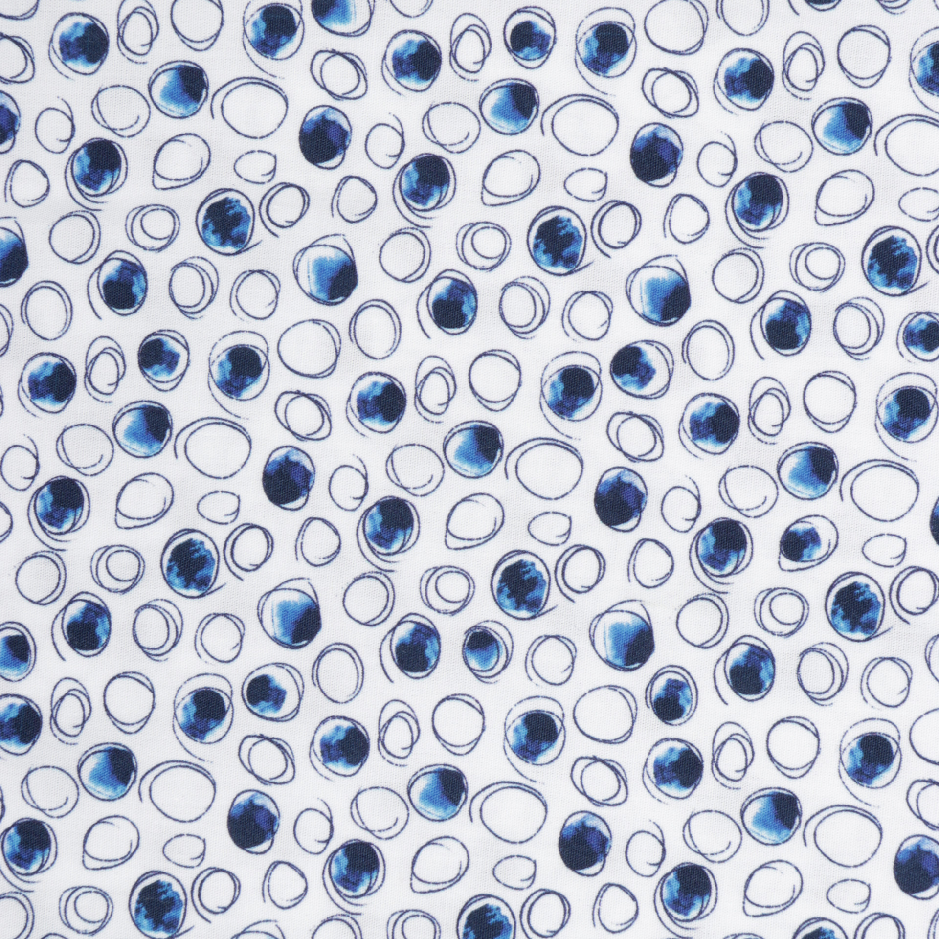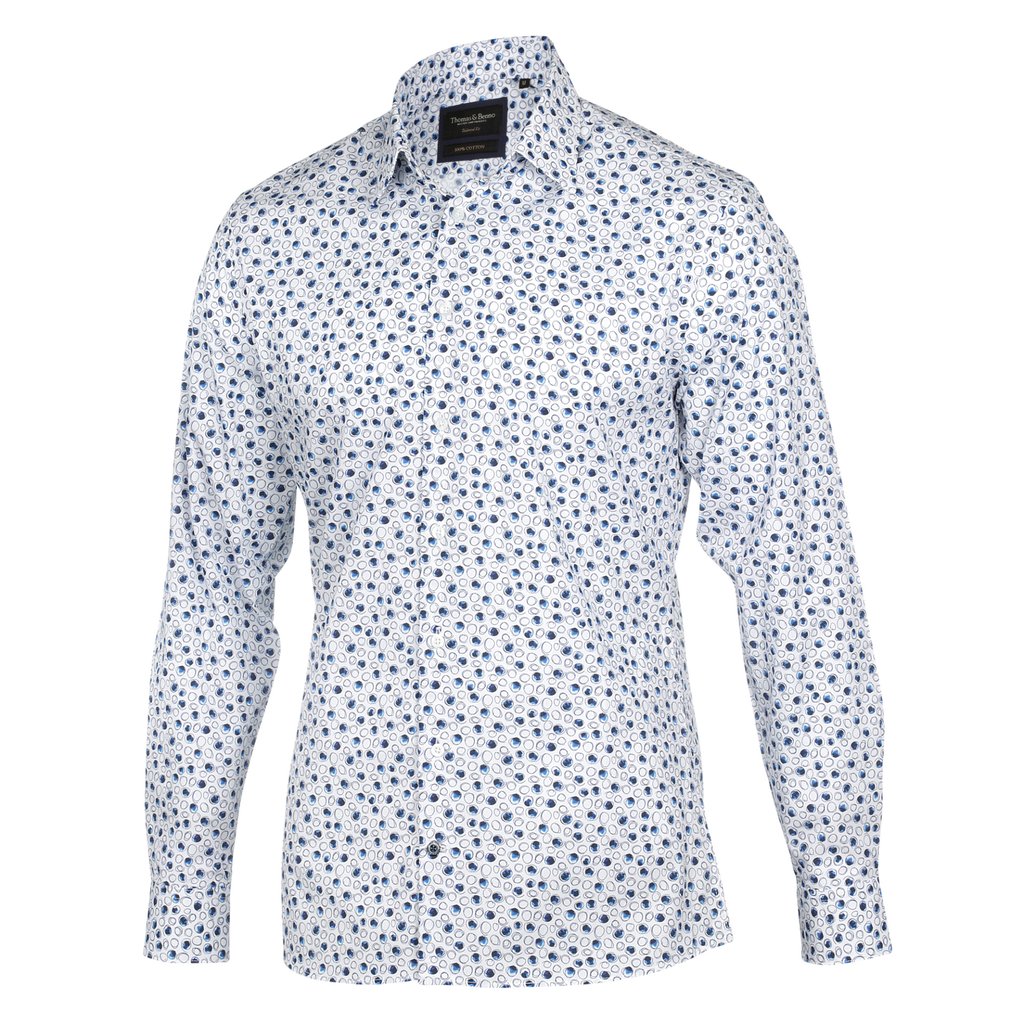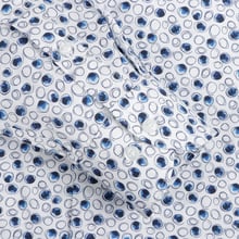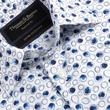 Cheerful White Shirt with Sketched Blue Circle Print | Tailored Fit