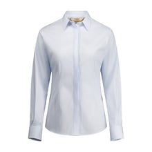 - Elegant covered button placket for seamless appearance