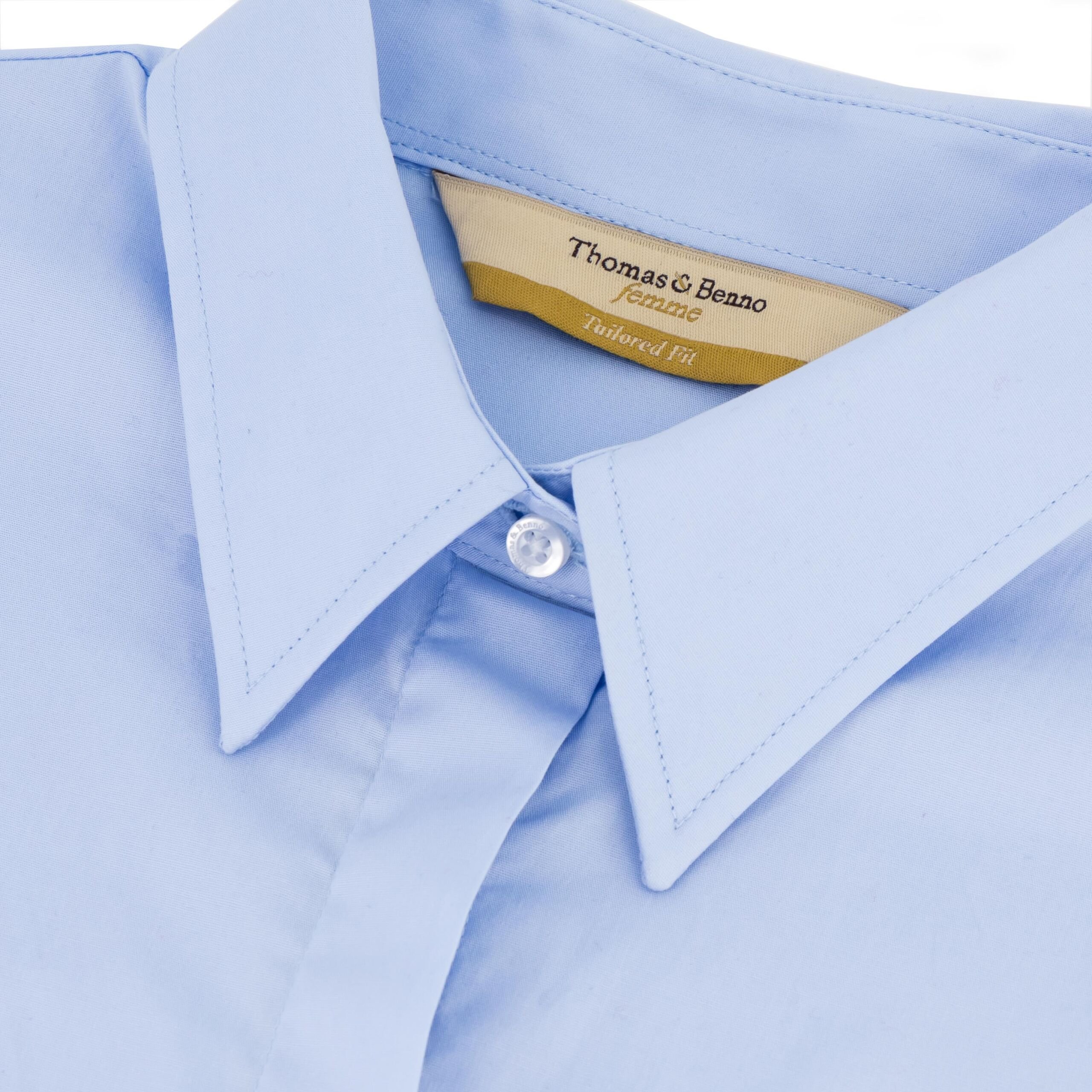 - Elegant semi-cutaway collar with removable stays for maintained crispness