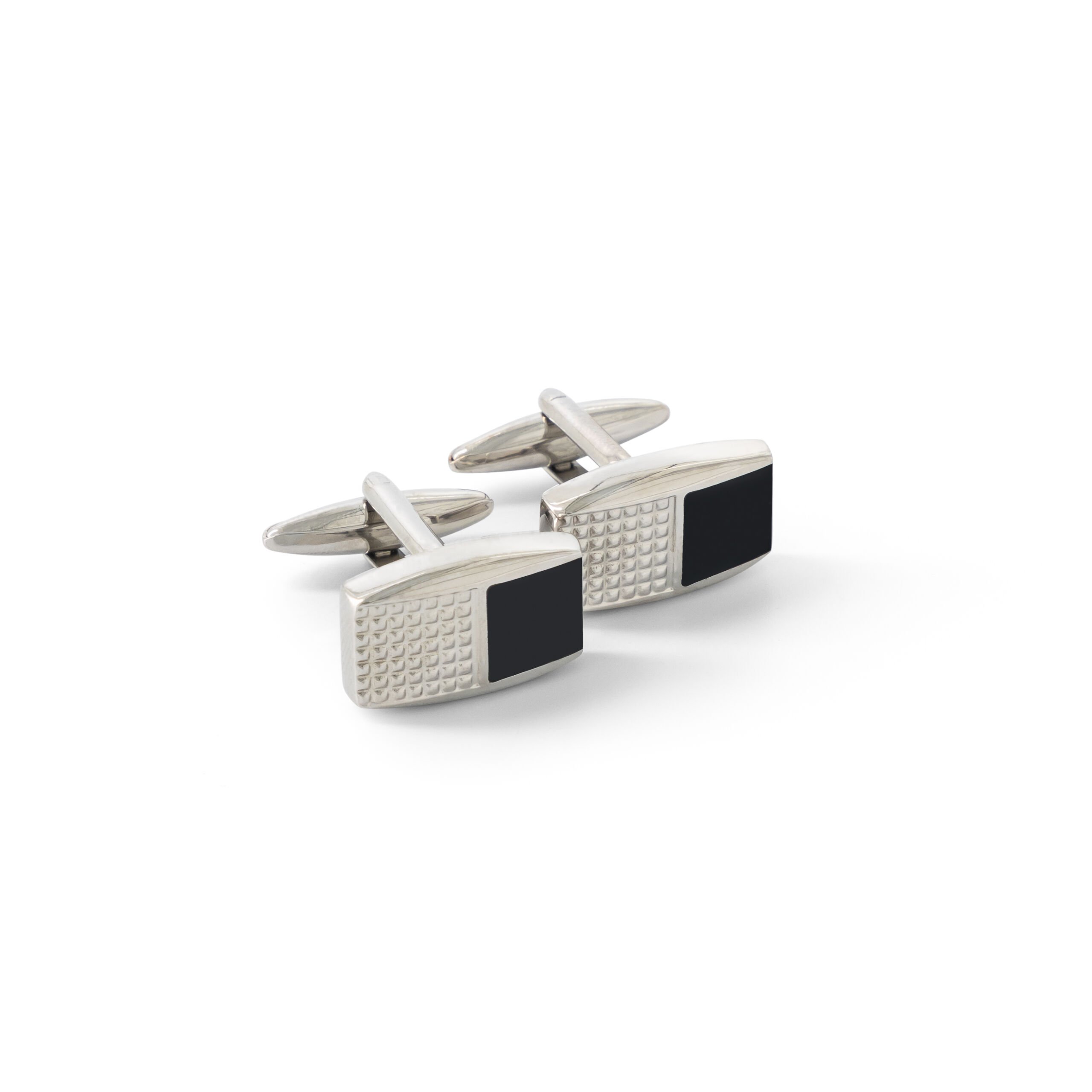 - Curved edge rectangular cufflinks with split face design