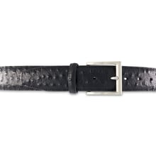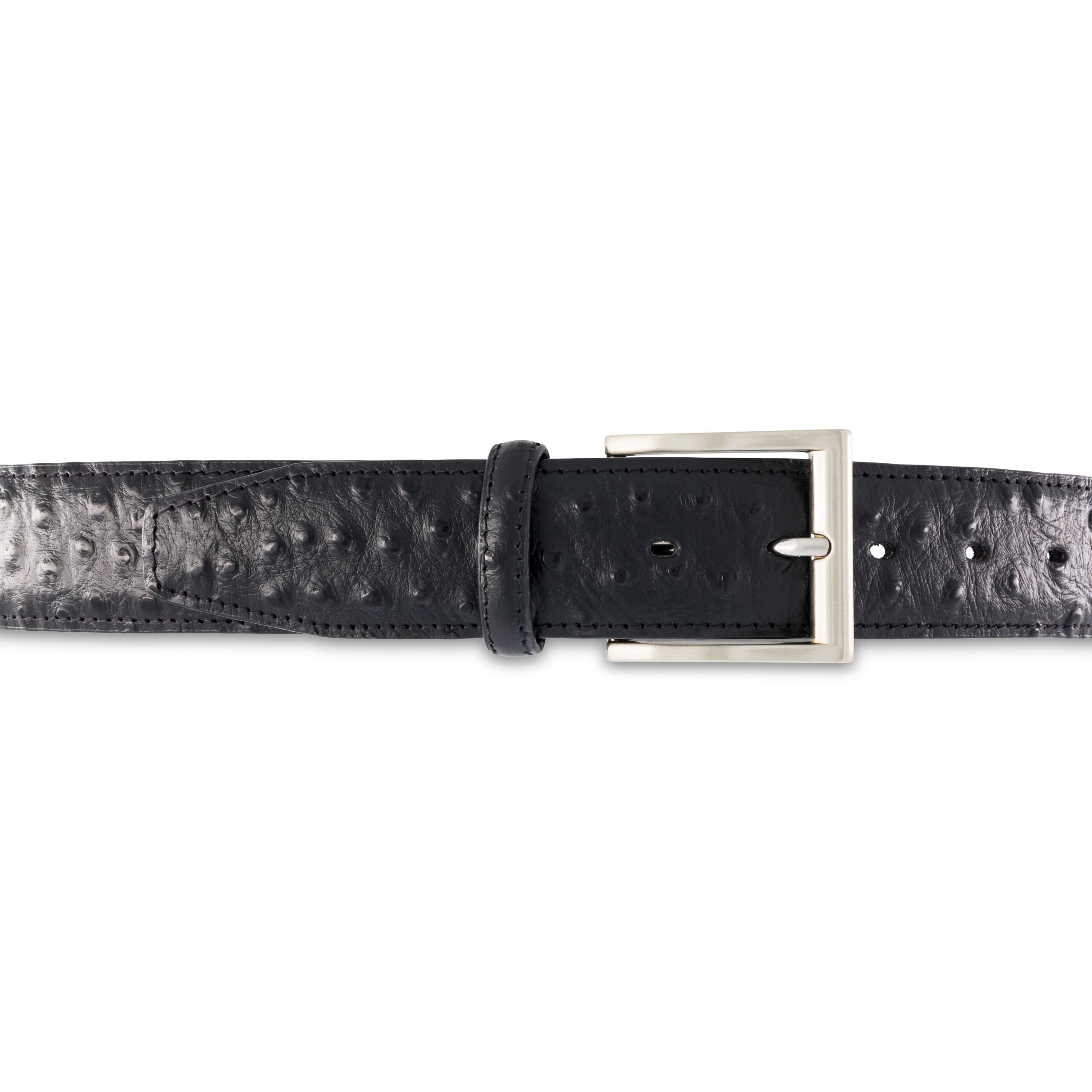 Experience the perfect blend of style and sophistication with our 35mm wide belt, crafted from genuine nappa leather and featuring a unique ostrich print design. The polished silver square classic buckle adds a touch of refinement, while the size-adjustable feature ensures a comfortable fit for any user. This belt is an essential accessory for formal events, business meetings, or everyday wear, and its black colour makes it a versatile addition to any wardrobe.
