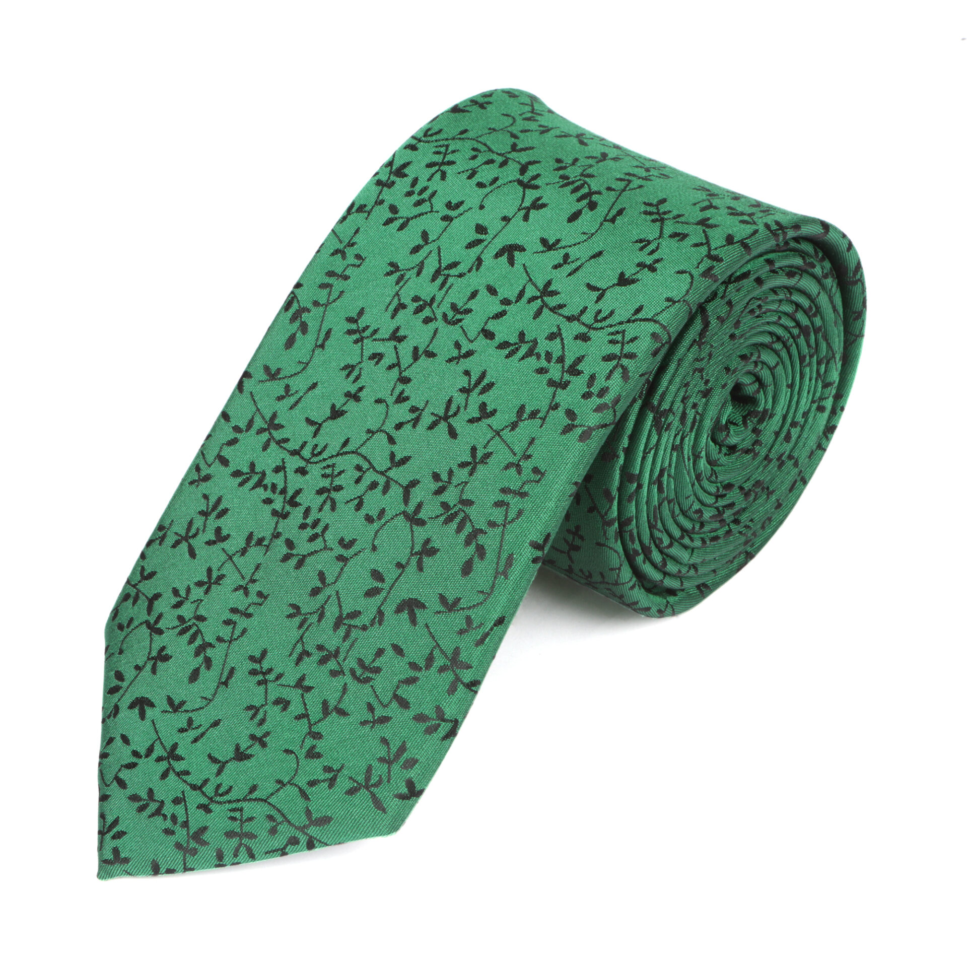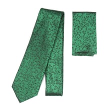 Elevate your style with this emerald green woven tie featuring a charming floral design. At 7.5cm wide, it exudes sophistication and pairs perfectly with the matching pocket square for a complete and polished look. Stand out from the crowd with this elegant accessory.