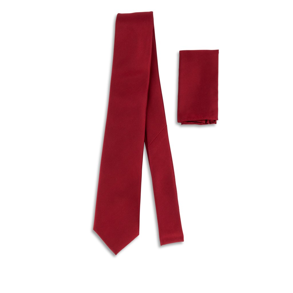 Add a touch of elegance to your outfit with this fire engine red 100% silk tie, featuring a luxurious satin finish. The set includes a matching 15cm x 15cm pocket square, perfect for completing your look.