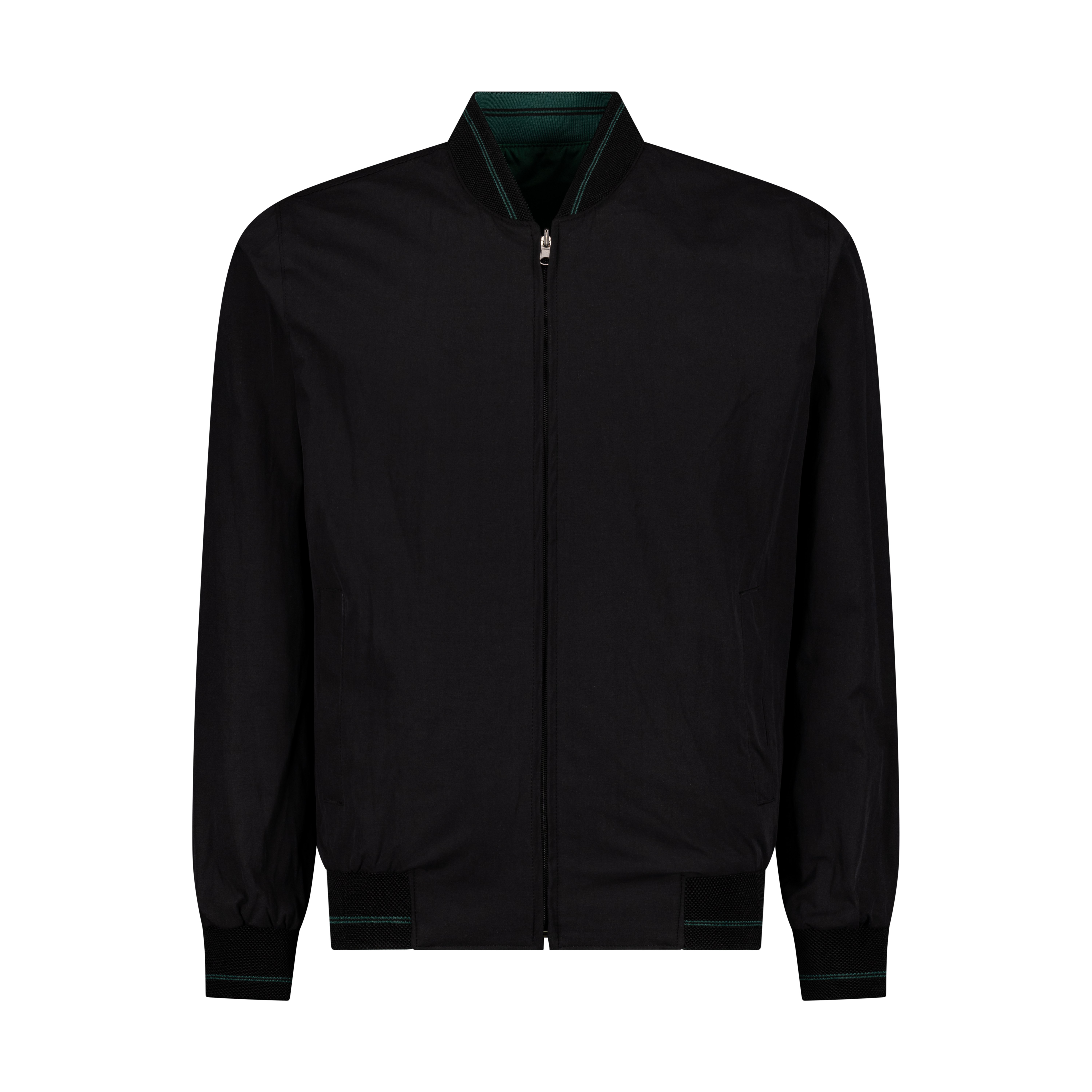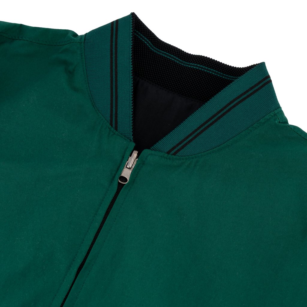 Constructed from a breathable cotton‑blend fabric, this bomber is lightweight enough for warm days yet ideal for layered outfits on cooler evenings. The ribbed collar, cuffs, and hem maintain a clean, structured fit, while the dual‑face pocket design ensures practicality whichever side you choose to wear.