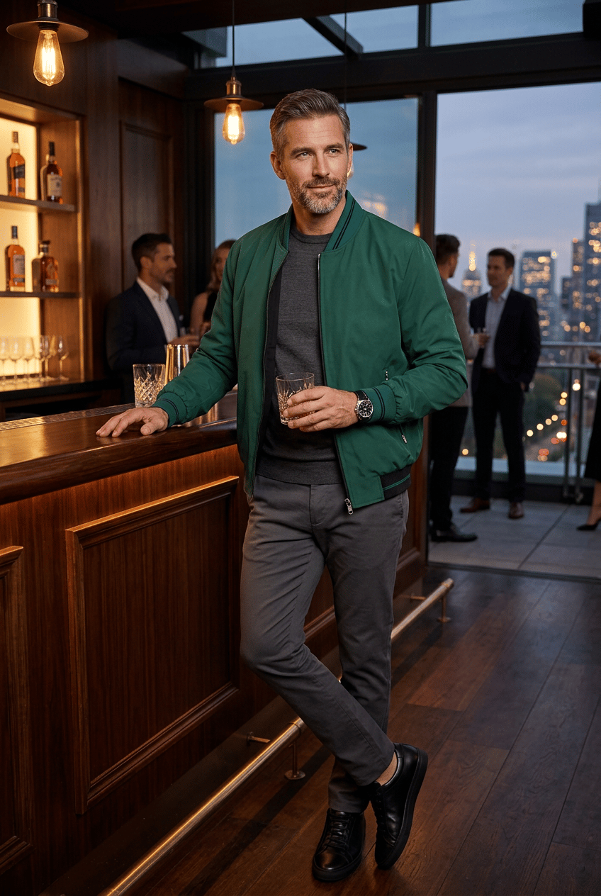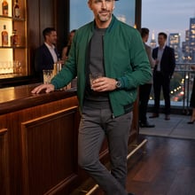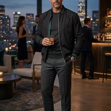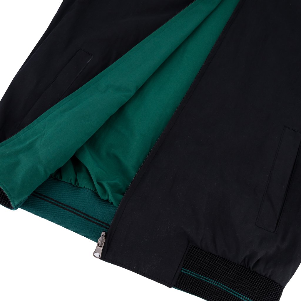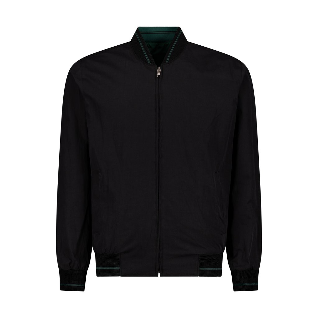 The Thomas and Benno Reversible Bomber Jacket in Green and Black offers two elevated looks in one, crafted for the man who values versatility without compromising sophistication. The green side presents a modern, understated tone complemented by black trim, while the black side offers a timeless, polished appearance with subtle green accents.