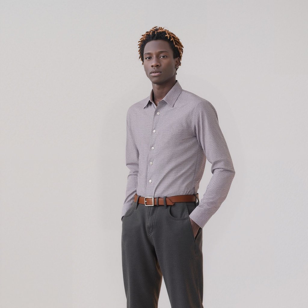 From the CEO Collection by Thomas and Benno, this grey houndstooth shirt is crafted from luxurious 100/2 cotton, offering a sophisticated pattern and exceptional comfort. The tailored fit delivers a contemporary, flattering look, while the semi cutaway collar and single cuffs provide versatility for any setting. Removable collar stays ensure your collar remains crisp all day. A refined choice for professionals who value understated style.