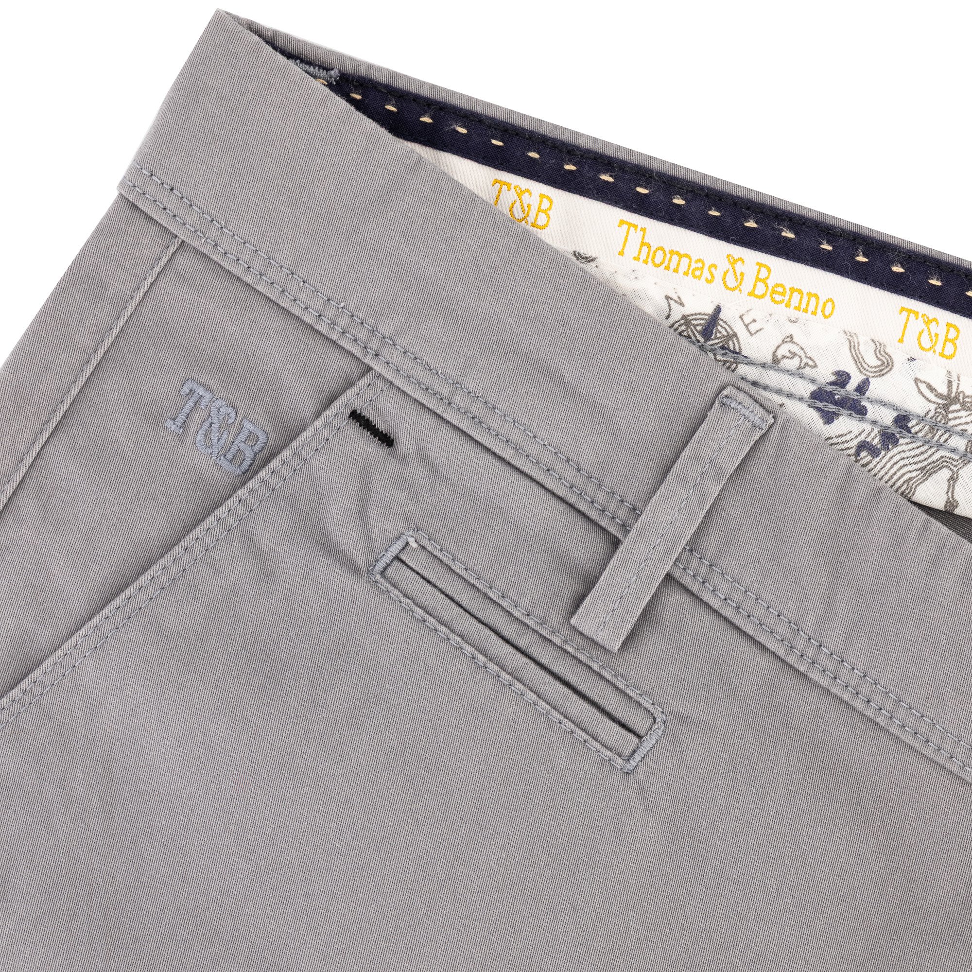 Thoughtful finishing touches, such as subtle T&B embroidery, tonal stitching, and a signature branded inner waistband, reflect the craftsmanship and attention to detail expected from Thomas & Benno.